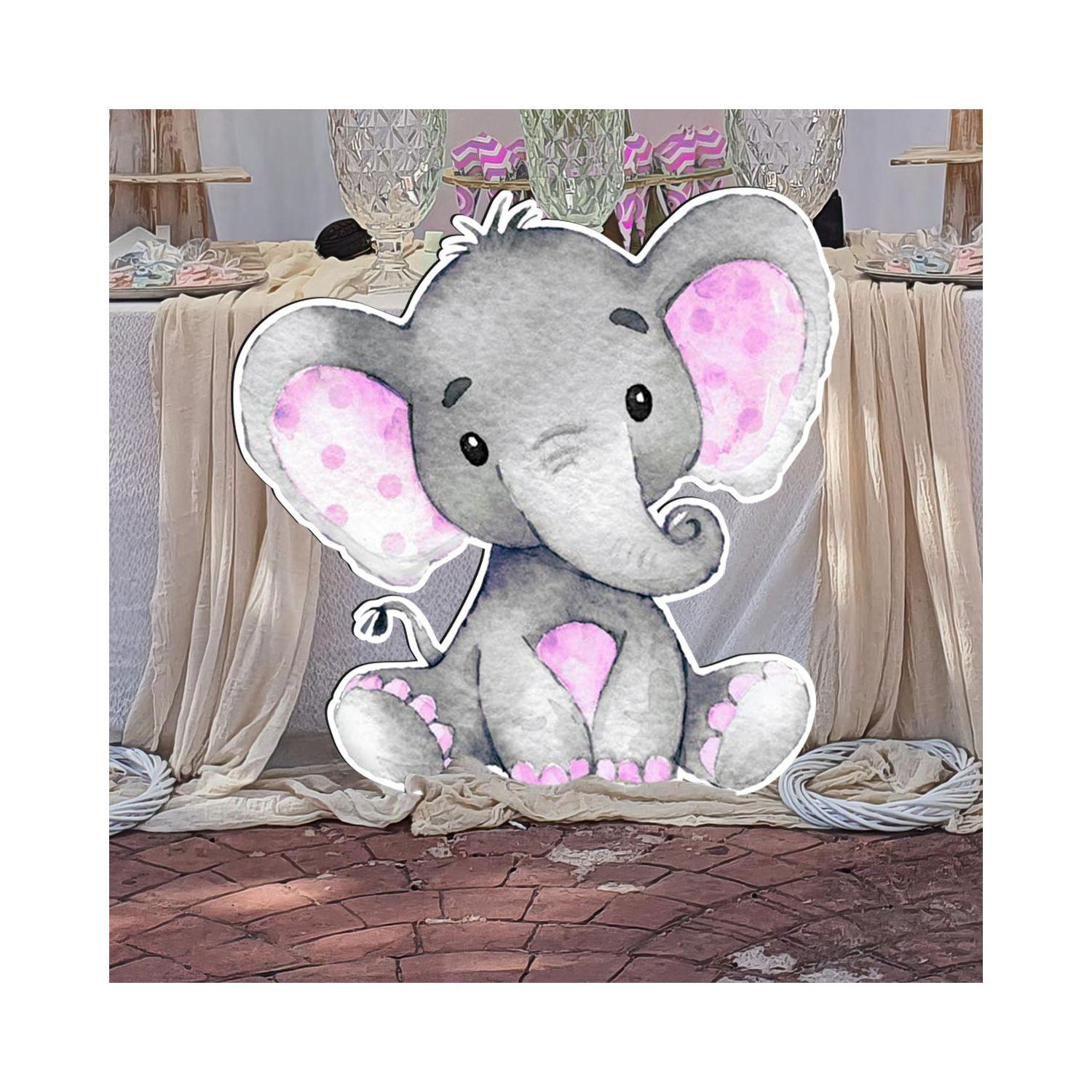 Ξύλινη φιγούρα εκτυπωμένη Ελεφαντάκι watercolor ροζ