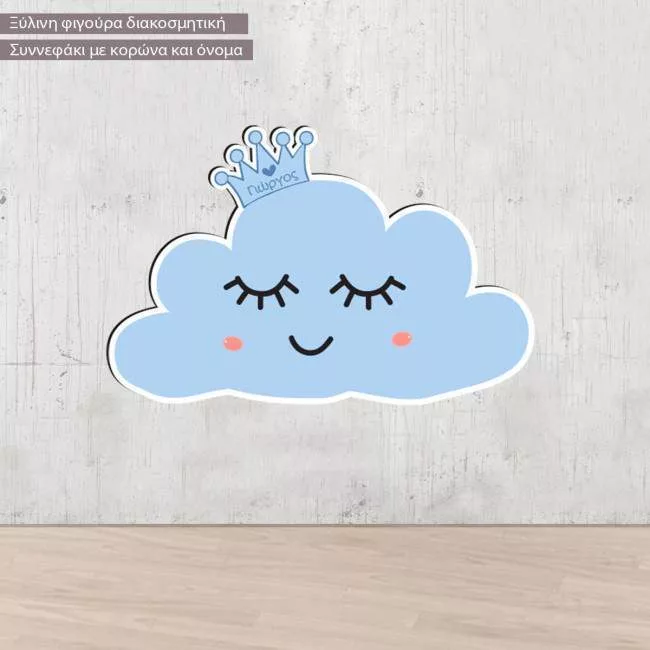 Συννεφάκι blue, ξύλινη φιγούρα εκτυπωμένη
