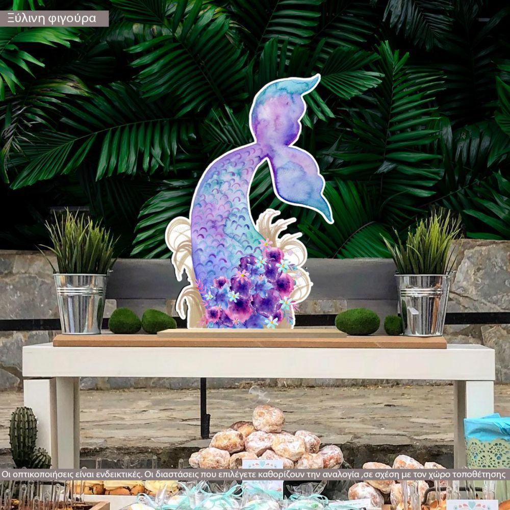 Ουρά γοργόνας ζωγραφιά, ξύλινη φιγούρα εκτυπωμένη