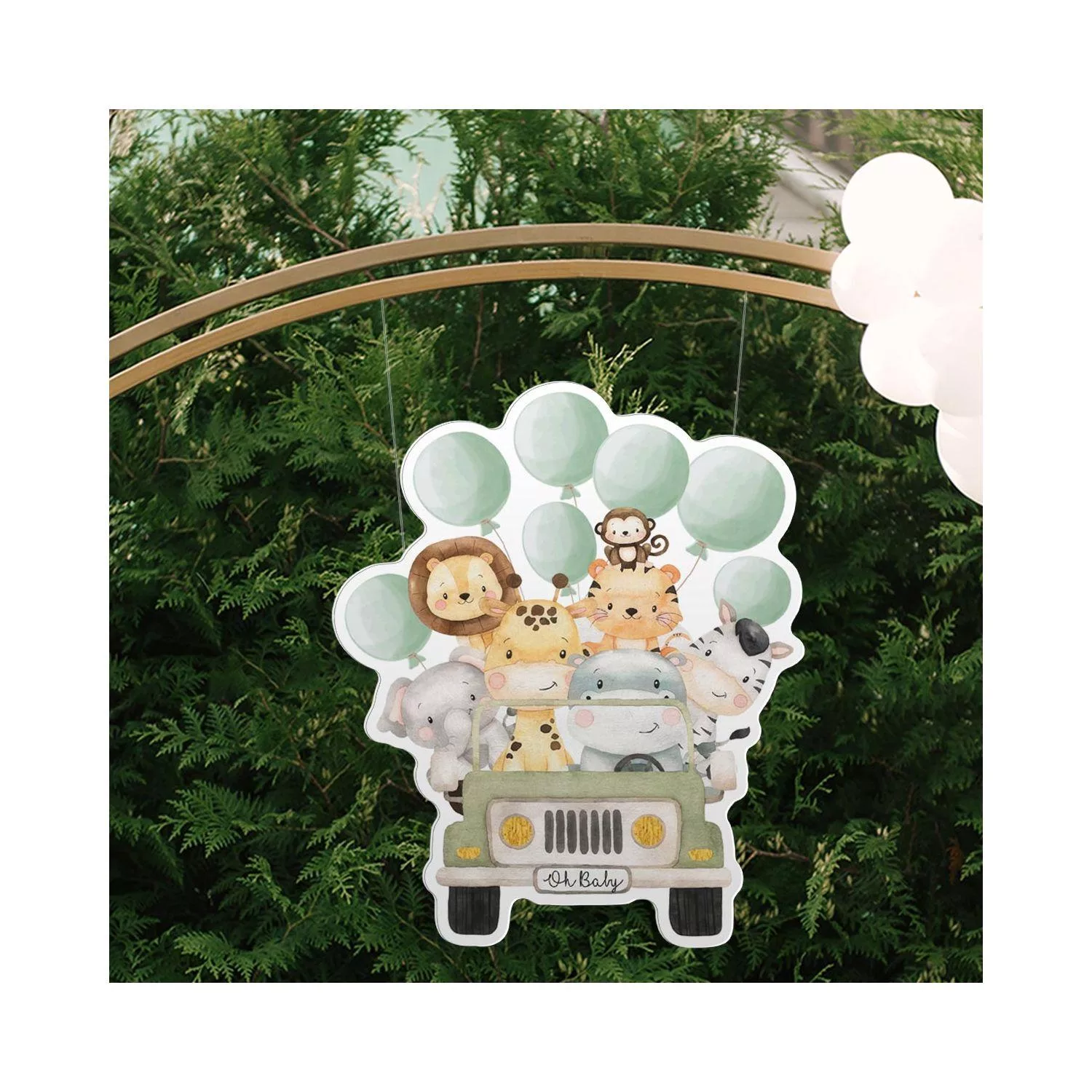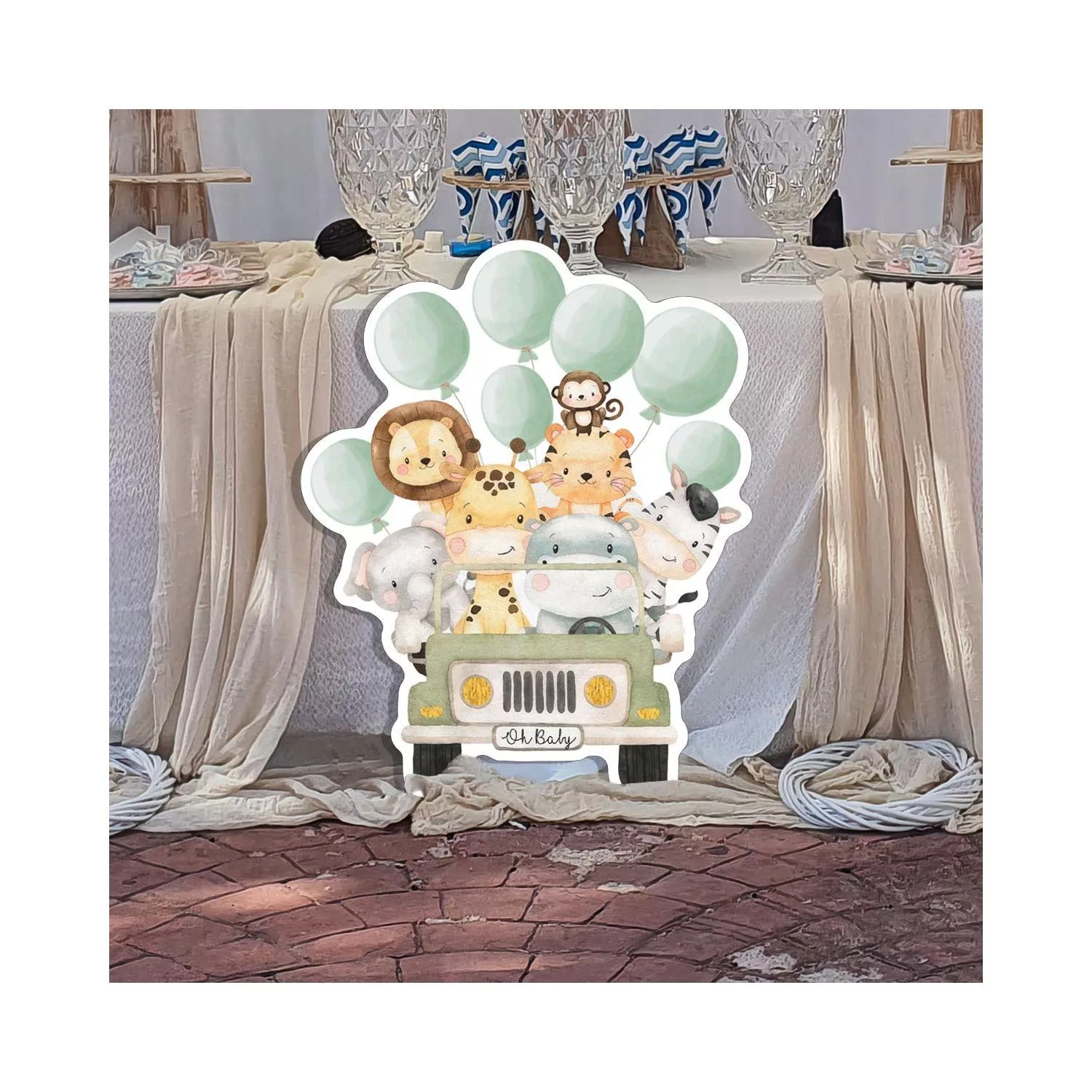 Παρέα ζωάκια σε τζιπάκι με μπαλόνια, ξύλινη φιγούρα εκτυπωμένη