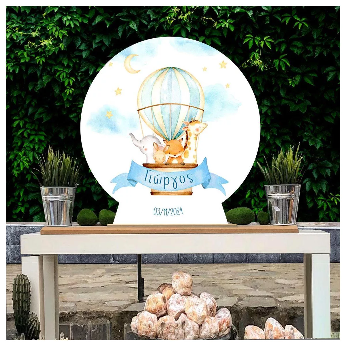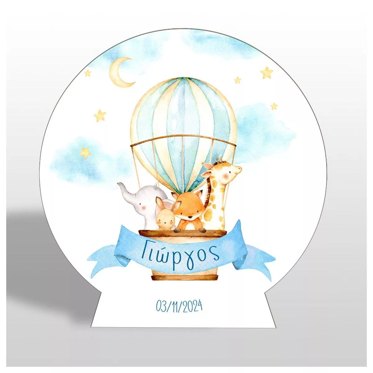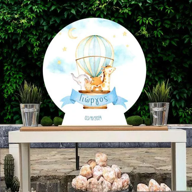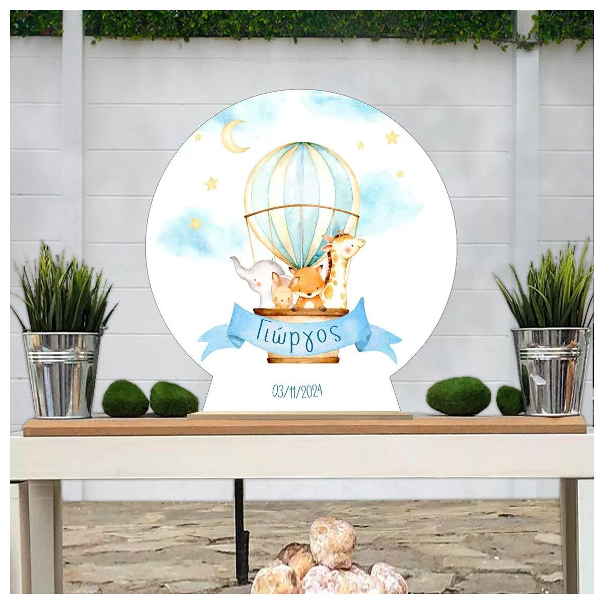 Ξύλινη πινακίδα, Αερόστατο και ζωάκια ζωγραφιστά