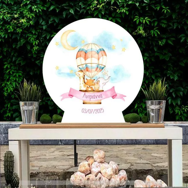 Ξύλινη πινακίδα, Αερόστατο και ζωάκια ζωγραφιστά art II