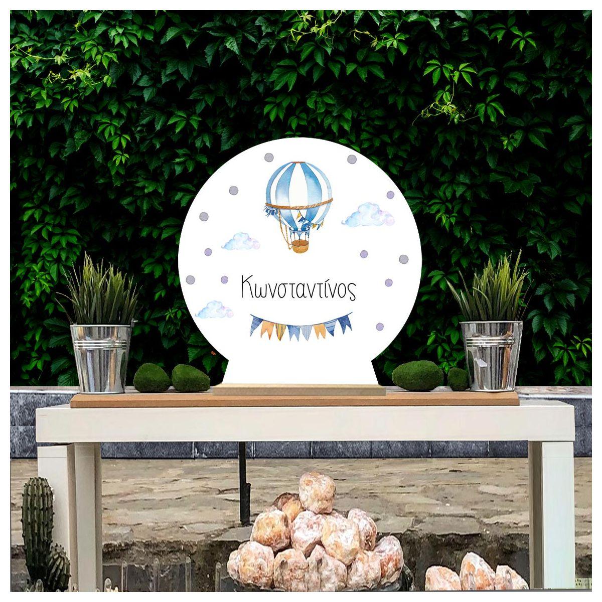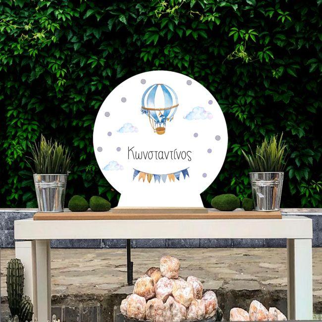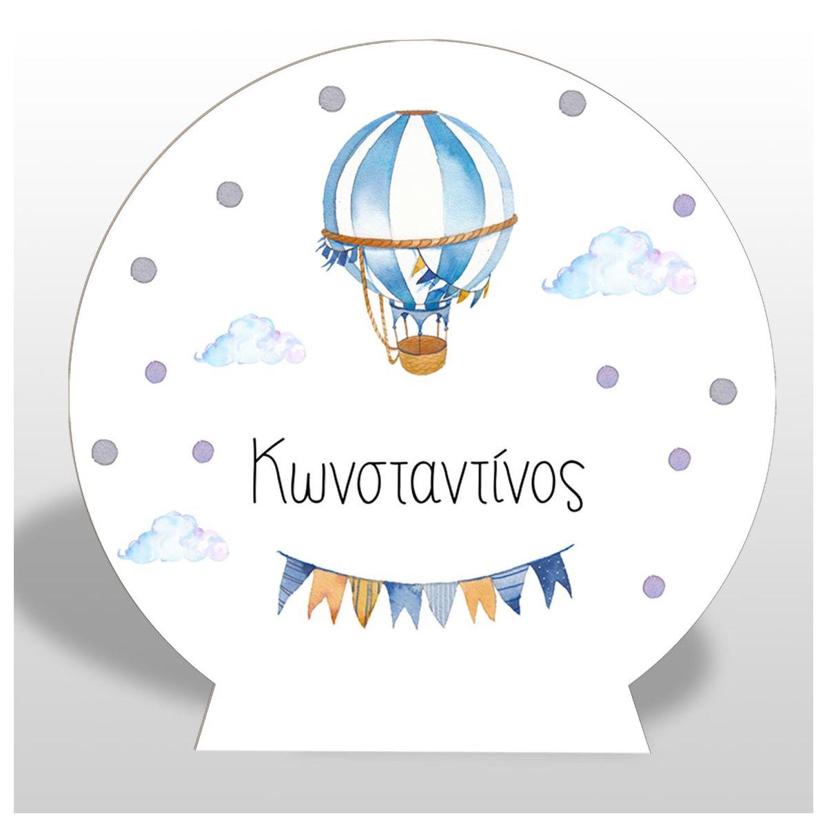 Ξύλινη πινακίδα, Αερόστατο watercolor με όνομα, μπλε