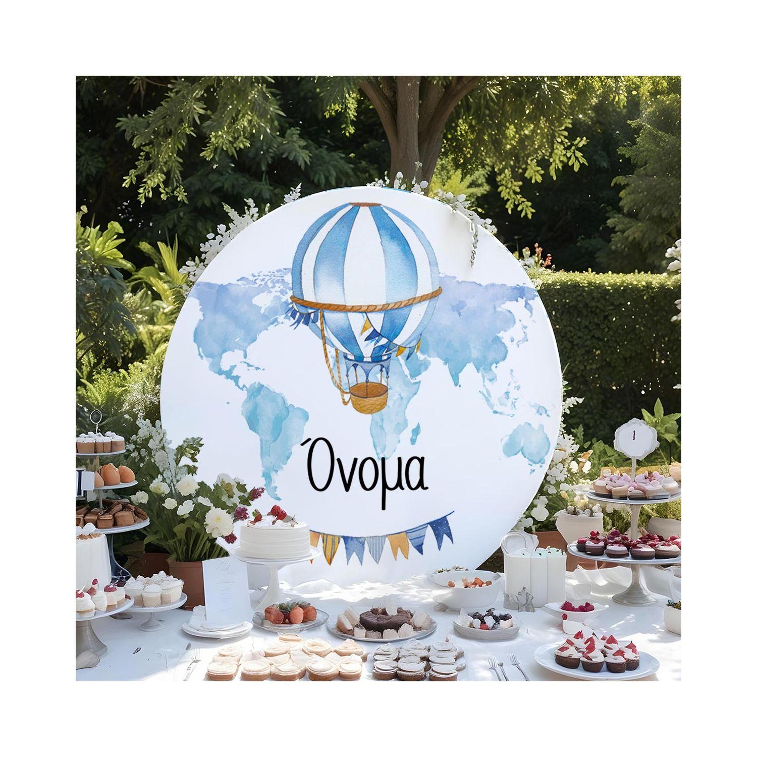 Ξύλινη πινακίδα, Αερόστατο watercolor με Χάρτη και όνομα, μπλε