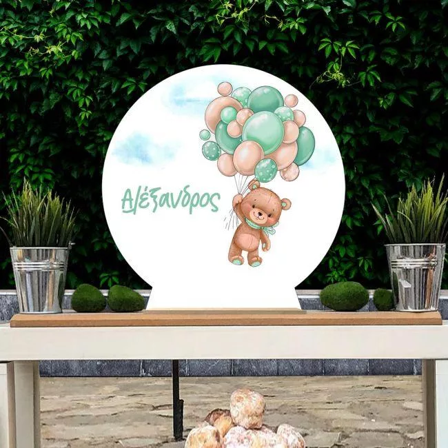Ξύλινη πινακίδα, Αρκουδάκι με πράσινα μπαλόνια