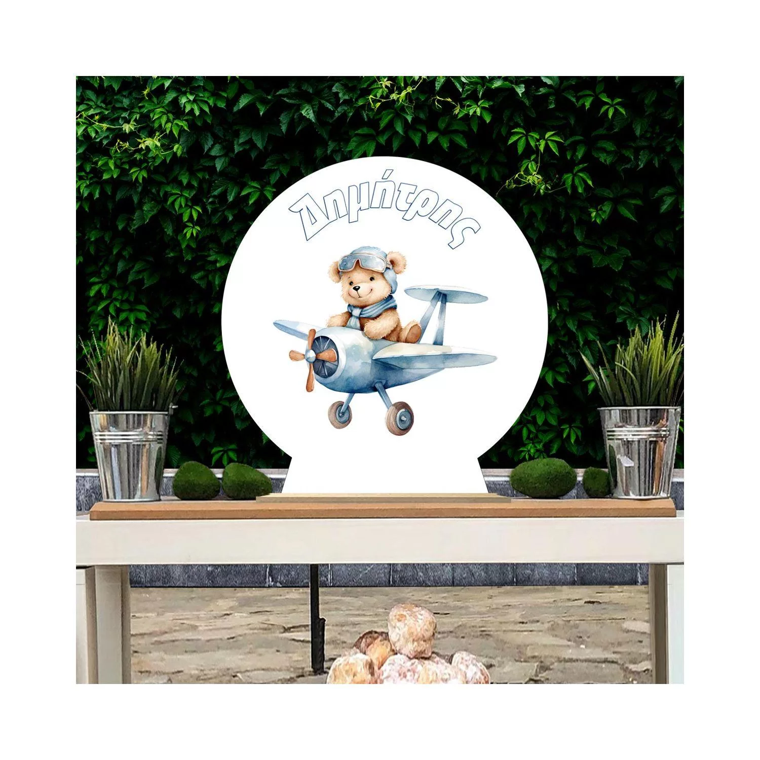 Ξύλινη πινακίδα, αρκουδάκι πιλότος σε αεροπλάνο, blue