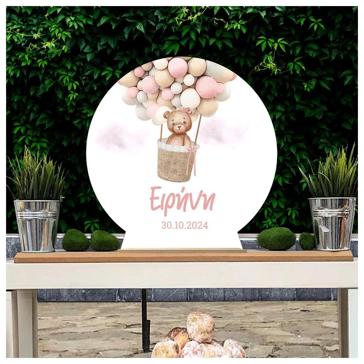 Ξύλινη πινακίδα, Αρκουδάκι ροζ μπαλόνια