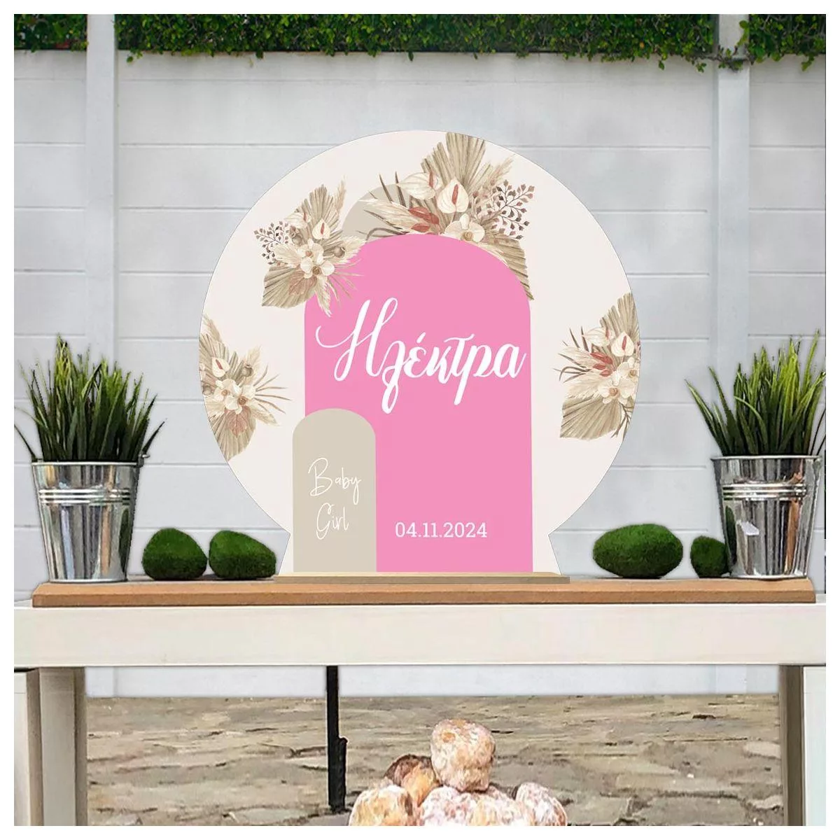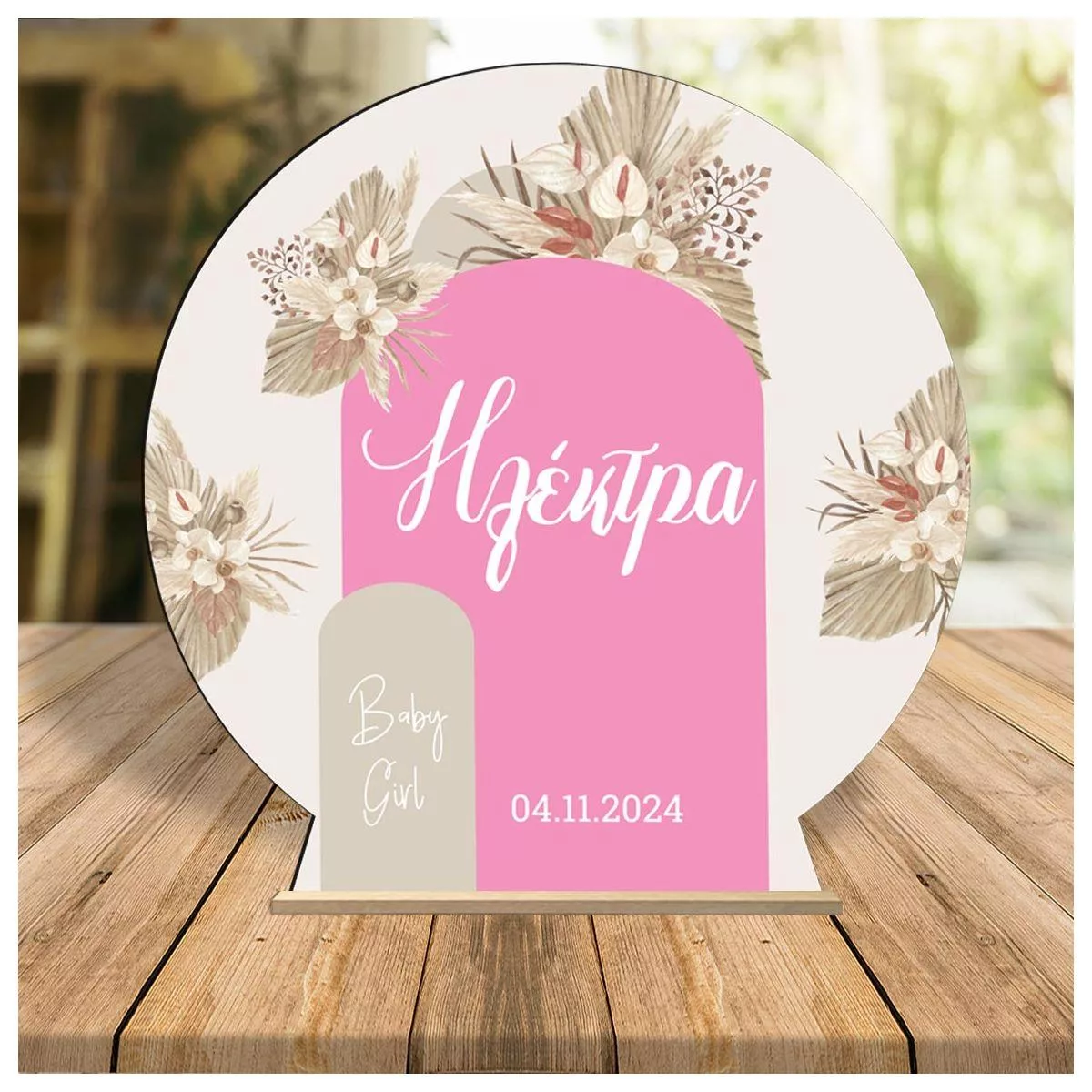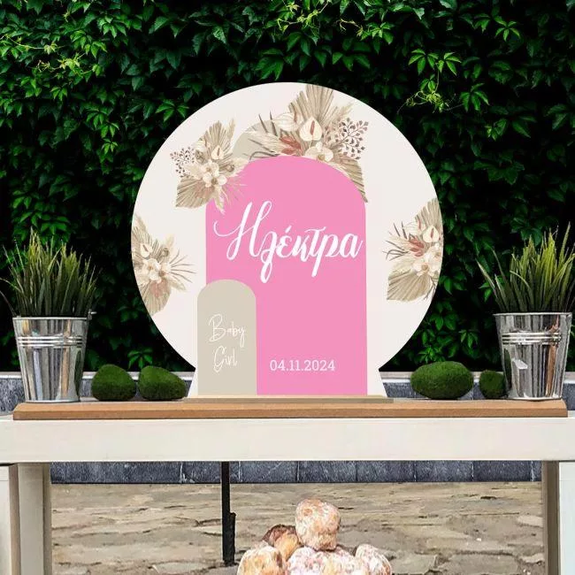 Ξύλινη πινακίδα, Baby girl boho pink beige