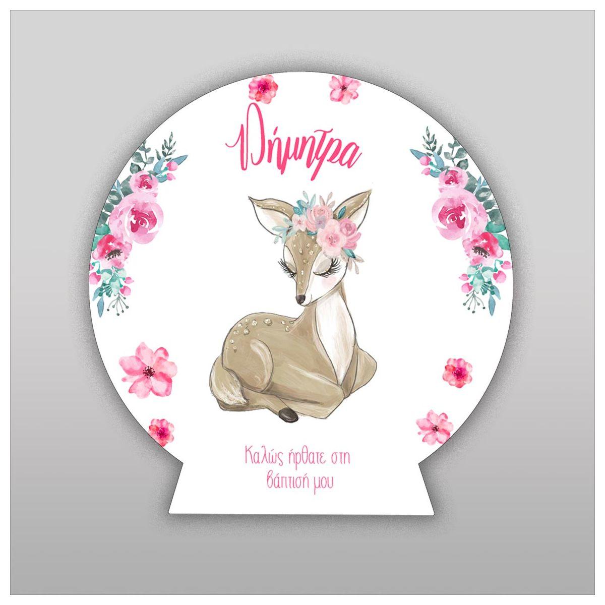 Ξύλινη πινακίδα, Ελαφάκι καθιστό με ζωγραφιστά λουλούδια