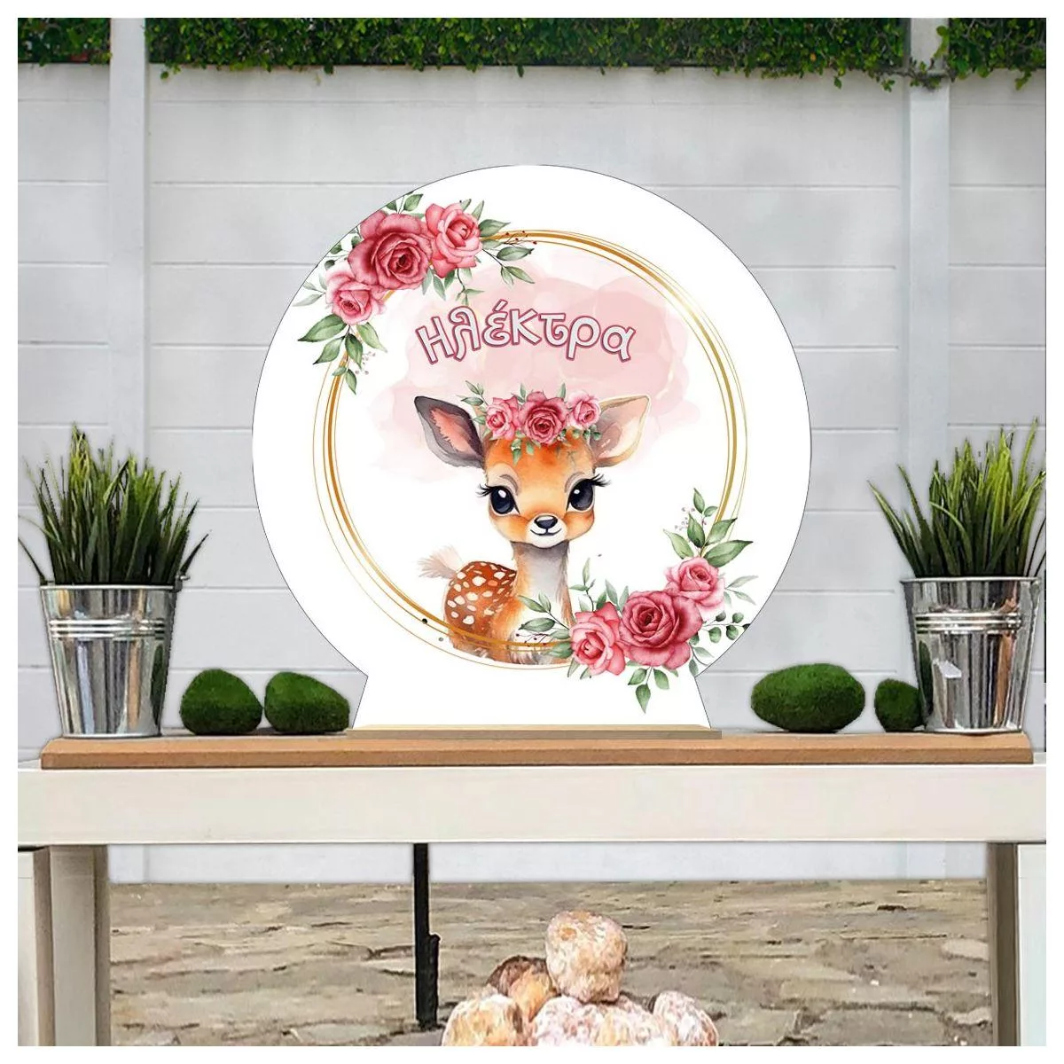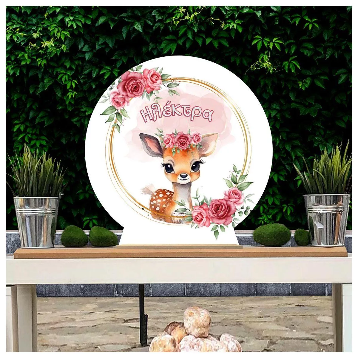 Ξύλινη πινακίδα, Ελαφάκι με κόκκινα λουλούδια