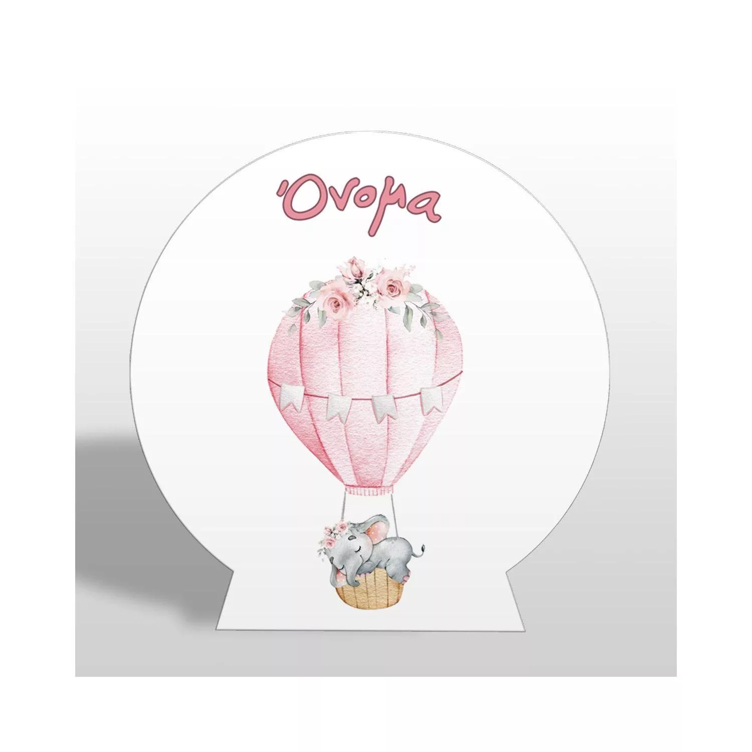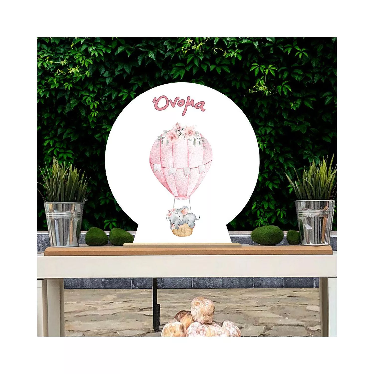 Ξύλινη πινακίδα, Ελεφαντάκι με λουλουδια σε αερόστατο Girly