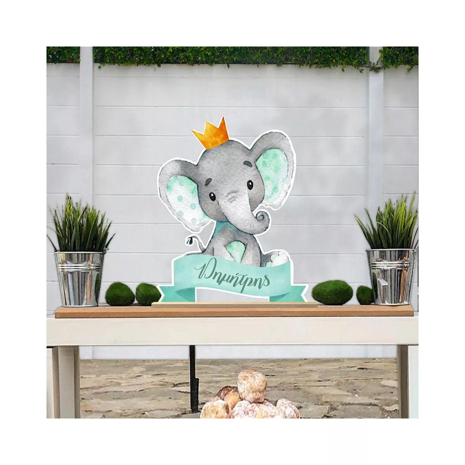 Ξύλινη πινακίδα, Ελεφαντάκι mint με κορώνα και όνομα