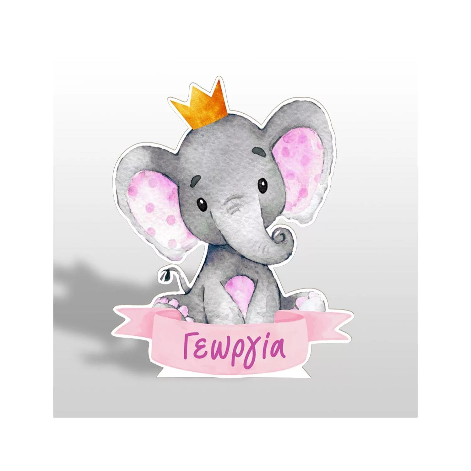 Ξύλινη πινακίδα, Ελεφαντάκι ροζ με κορώνα και όνομα