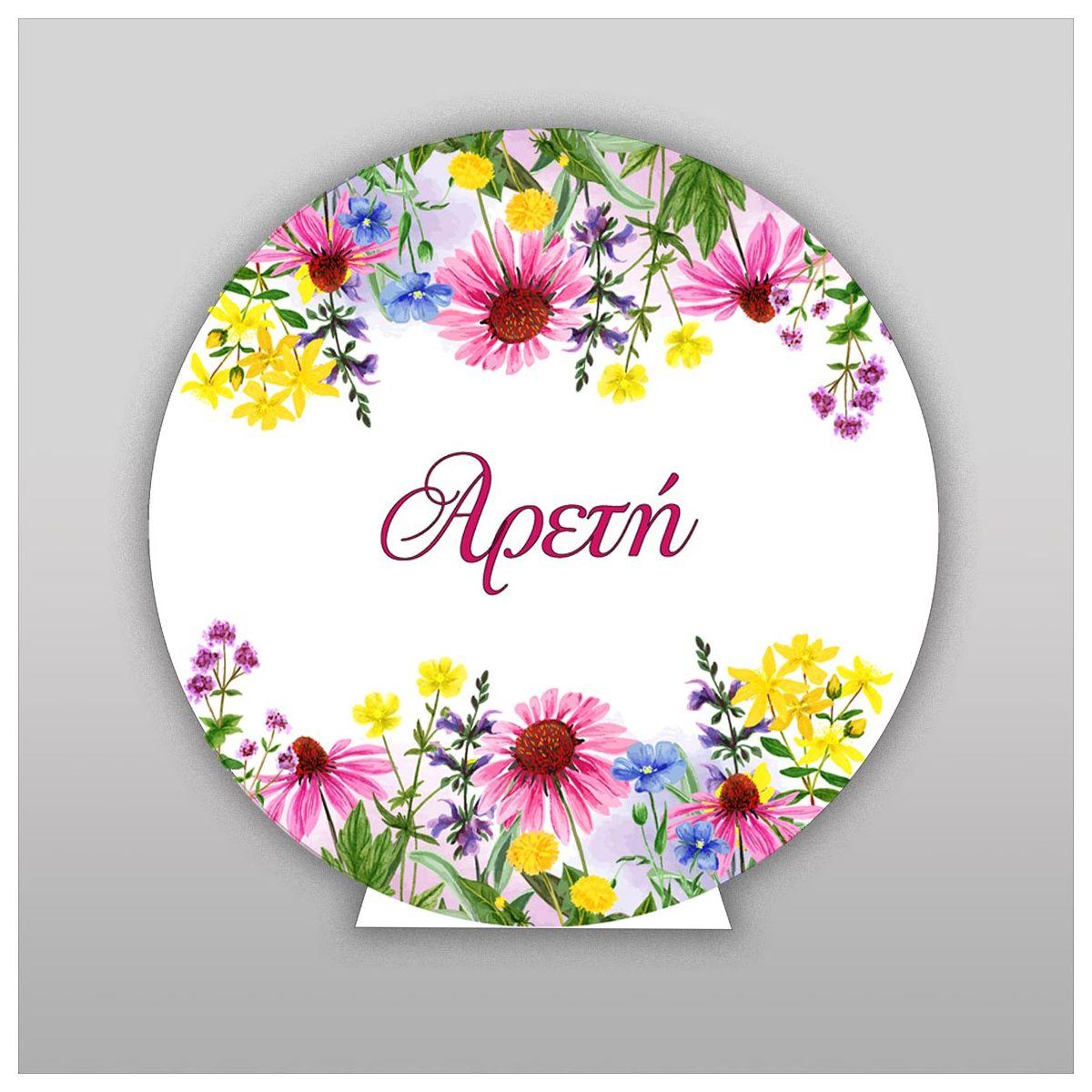 Ξύλινη πινακίδα, καλοκαιρινά ζωγραφιστά λουλούδια προσωποποιημένη