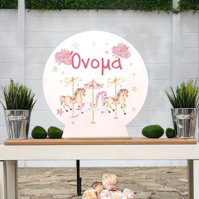Ξύλινη πινακίδα, Καρουζέλ ροζ θέμα προσωποποιημένη