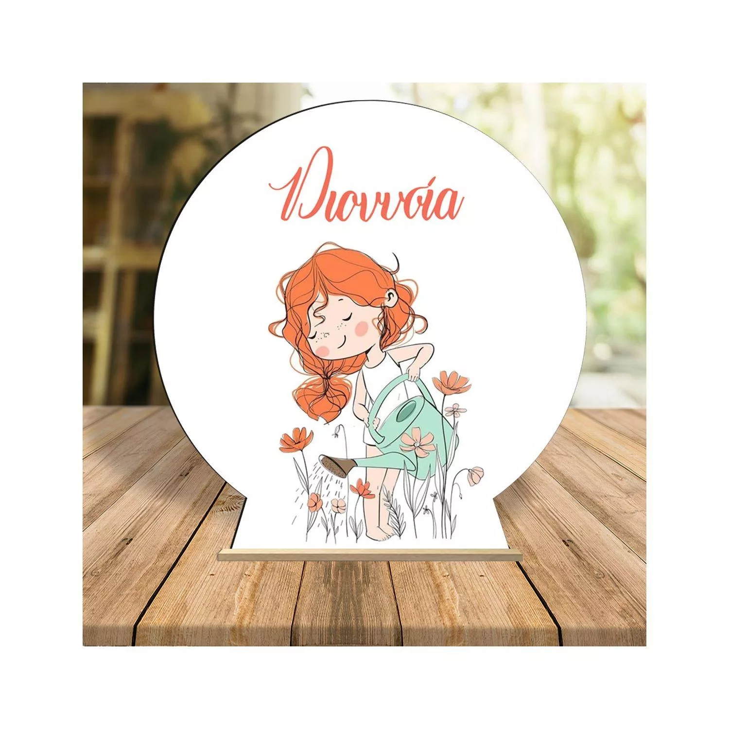 Ξύλινη πινακίδα, Κοριτσάκι με λουλούδια