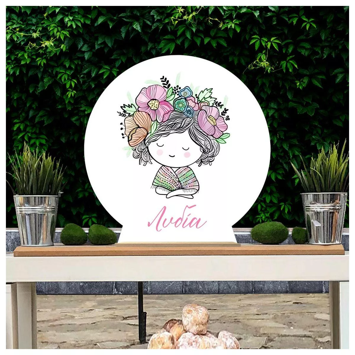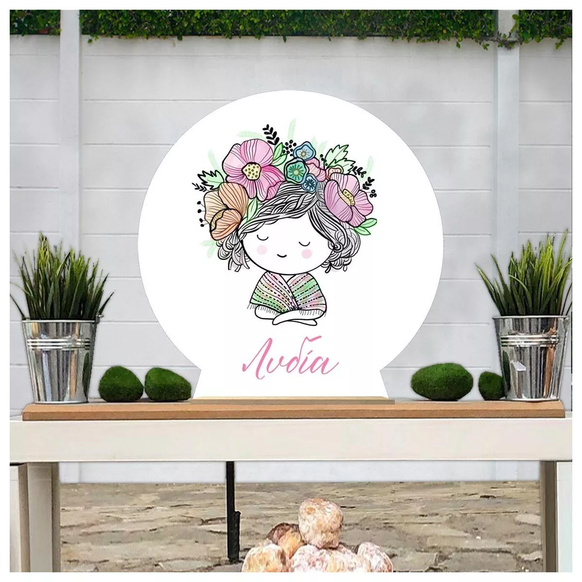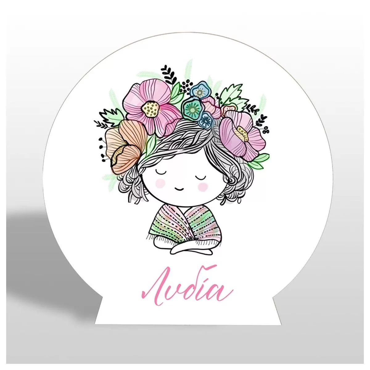 Ξύλινη πινακίδα, Κοριτσάκι με λουλούδια, line art