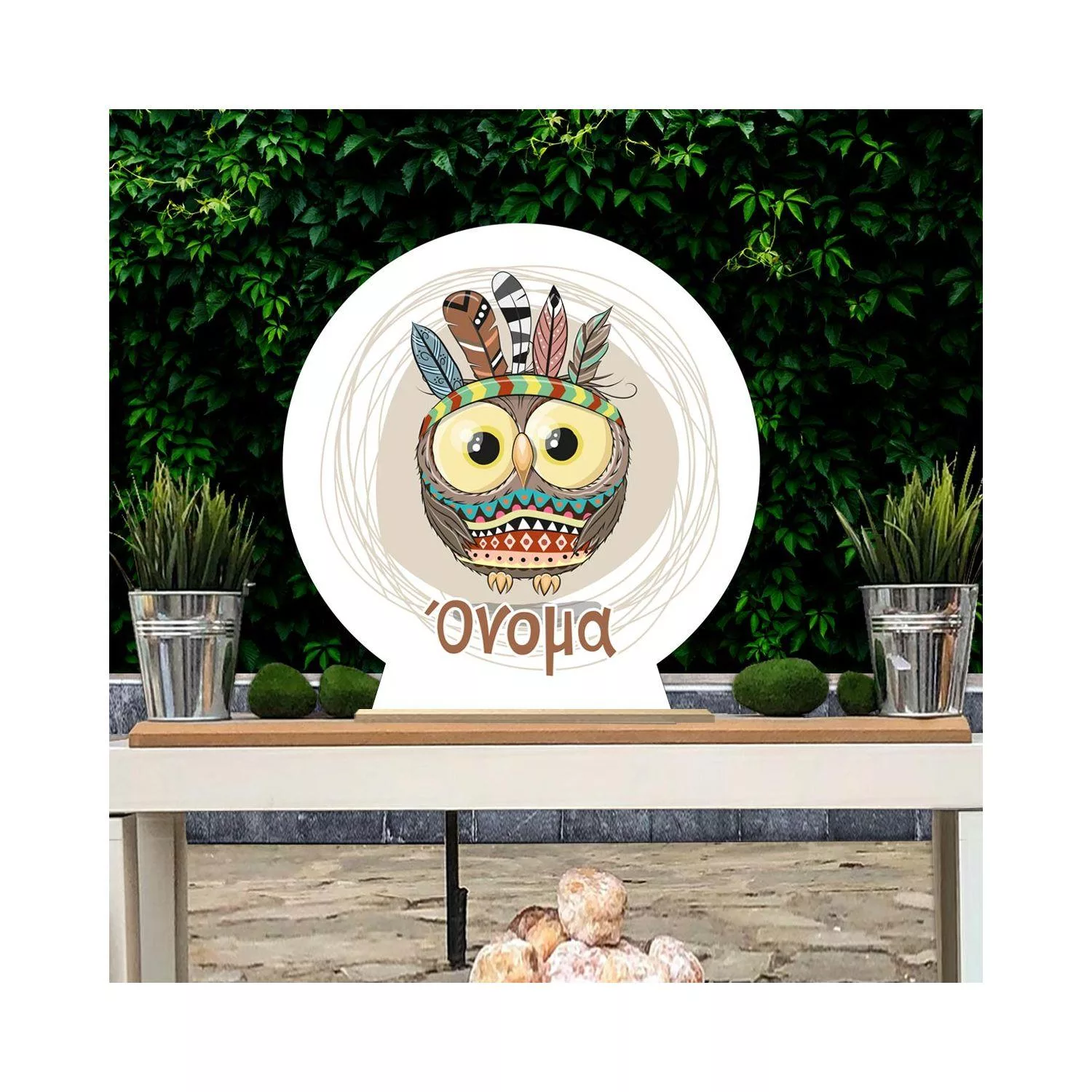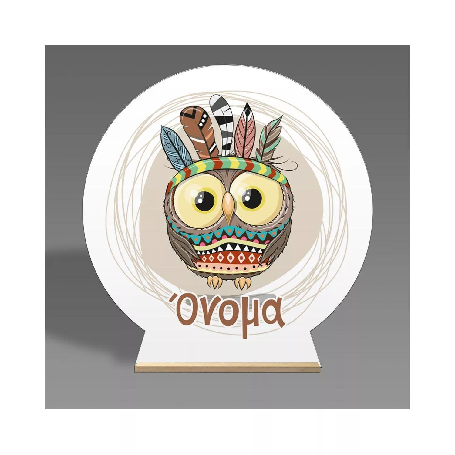 Ξύλινη πινακίδα, Κουκουβάγια boho, προσωποποιημένη