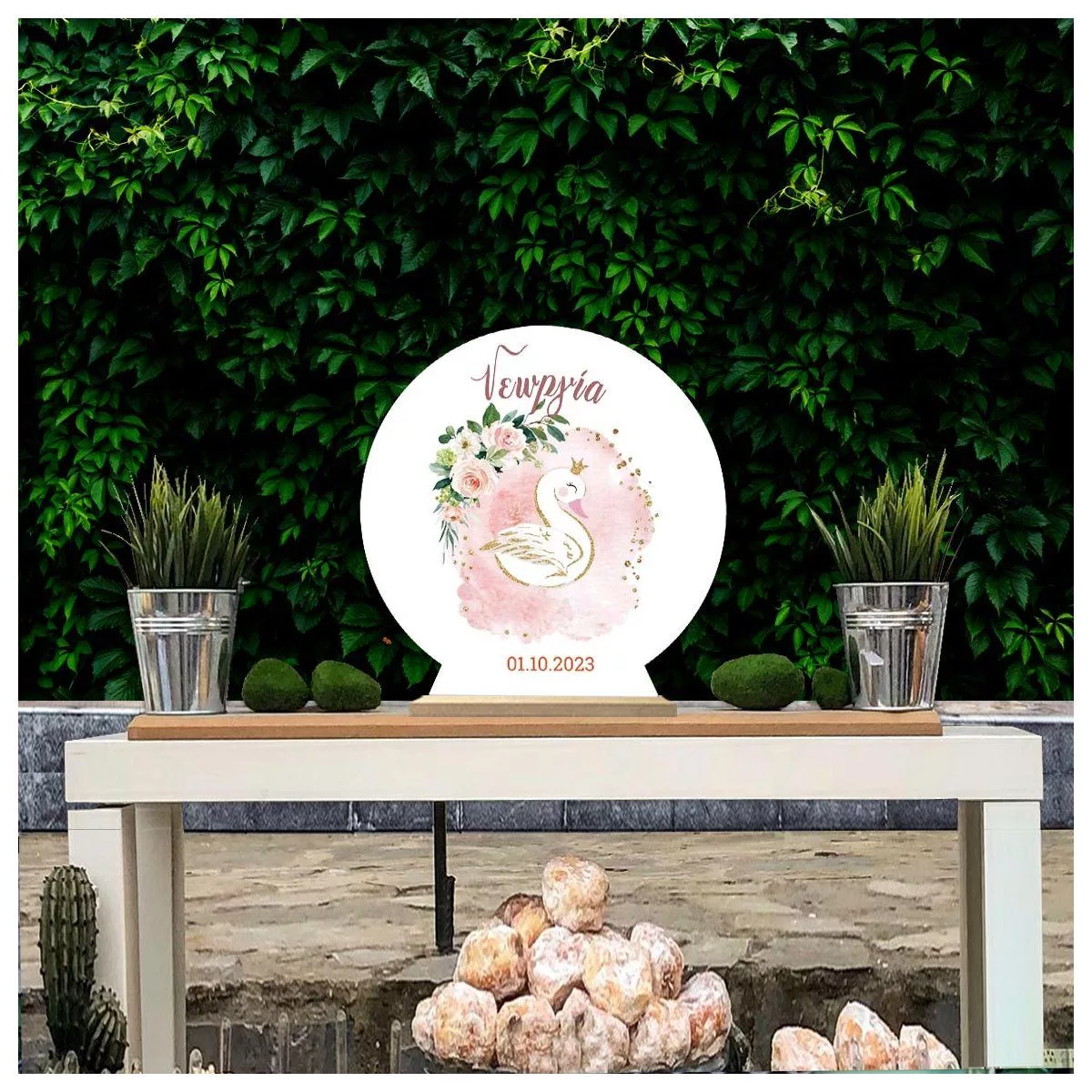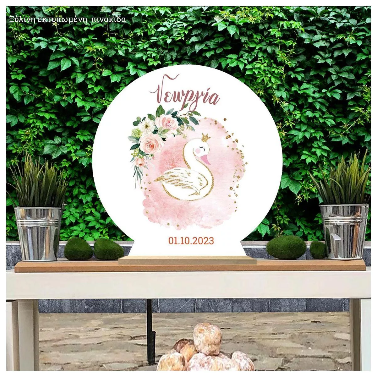 Ξύλινη πινακίδα, Κύκνος με λουλούδια