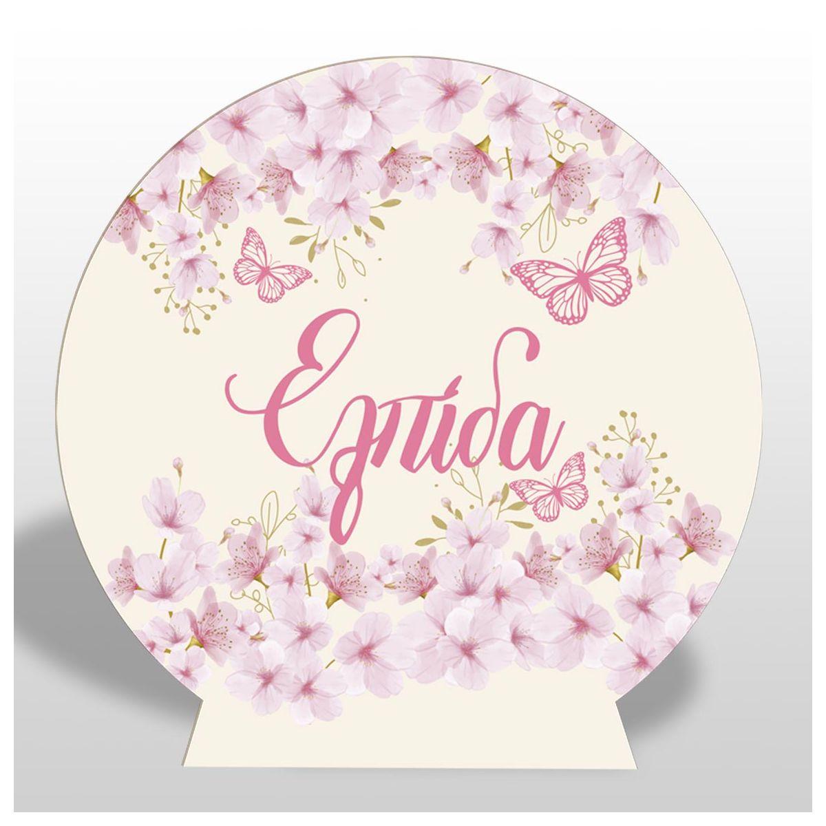 Ξύλινη πινακίδα, Λουλούδια και πεταλούδες ροζ θέμα