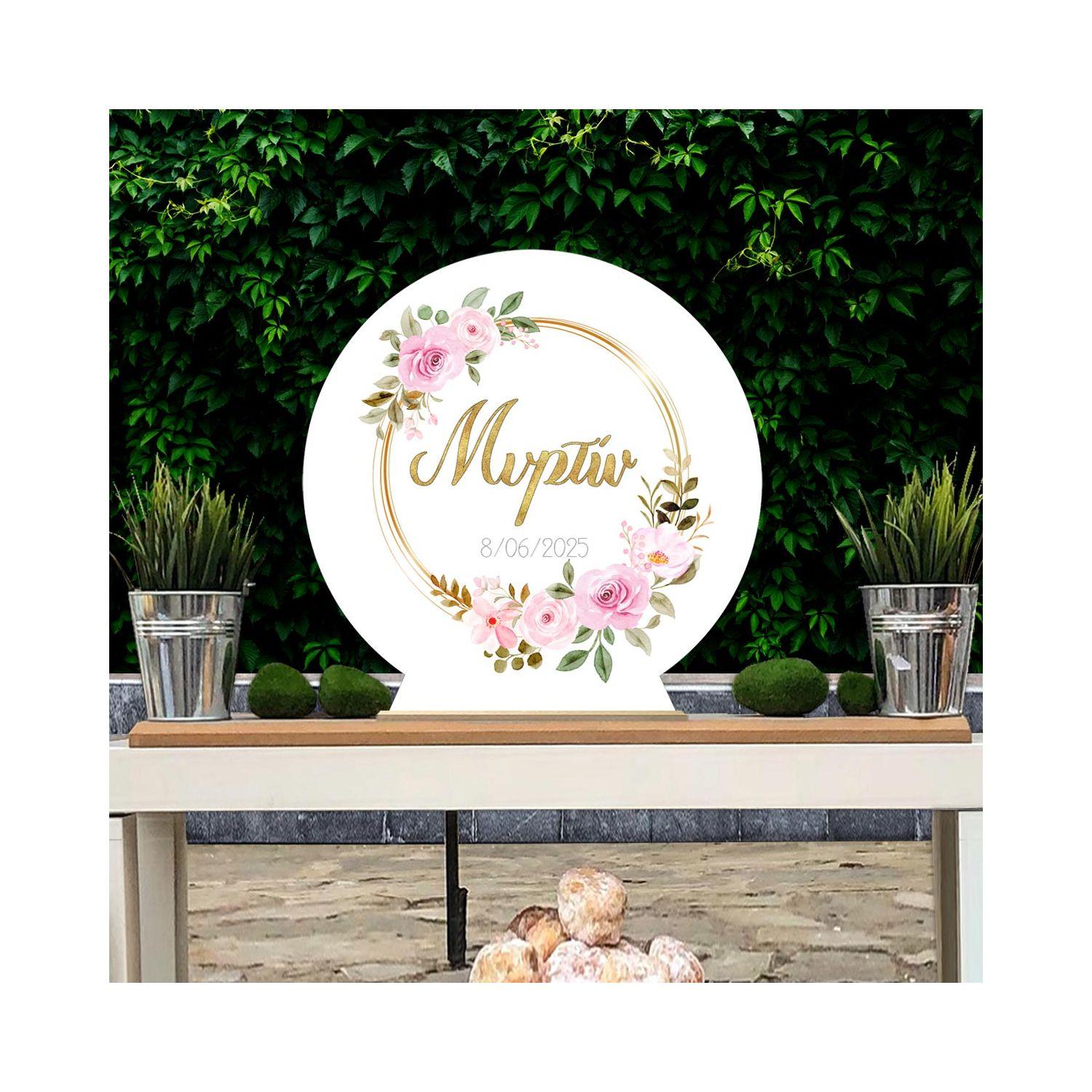 Ξύλινη πινακίδα, Λουλούδια χρυσοί κύκλοι και γράμματα