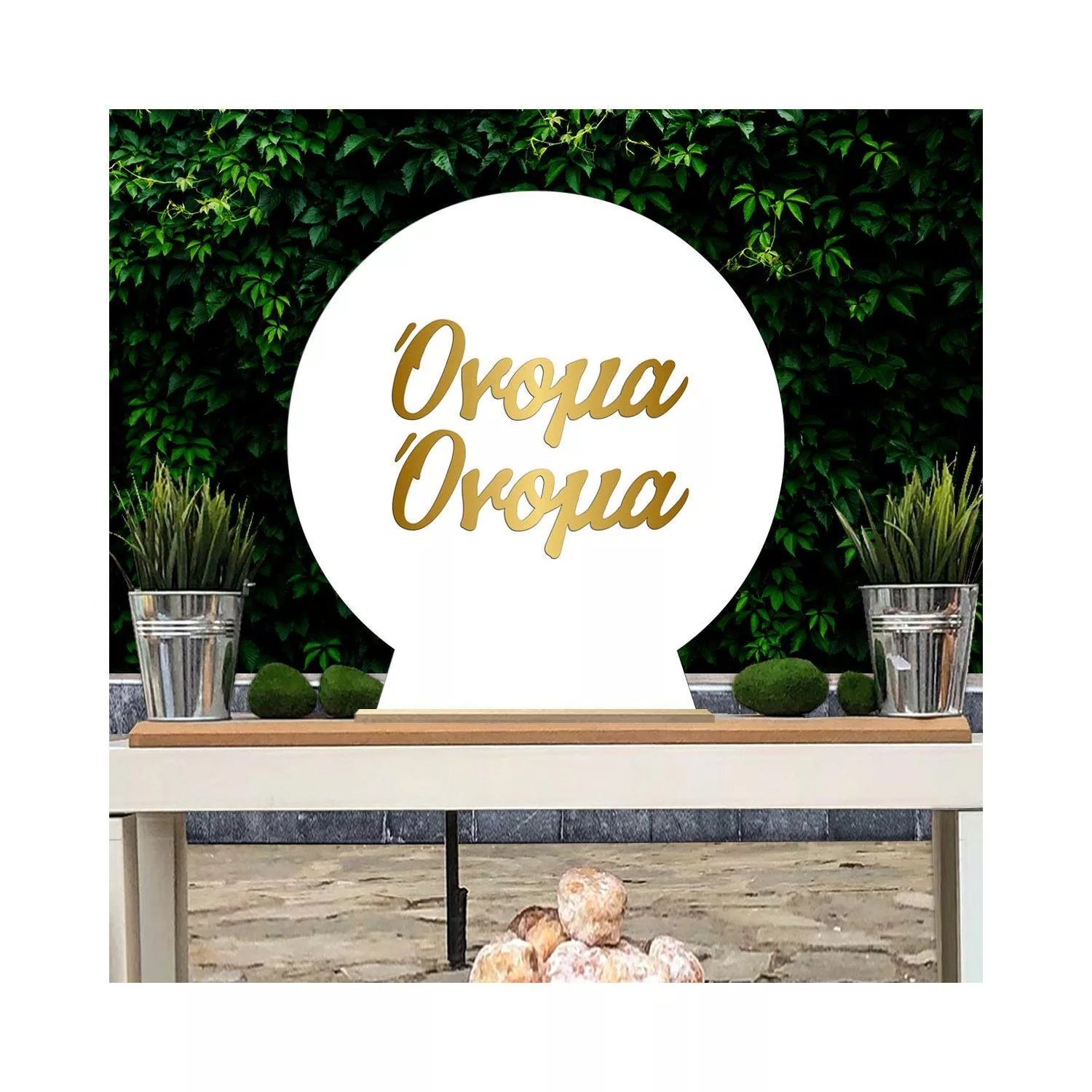 Minimal λευκή πινακίδα, με χρυσό plexiglass όνομα