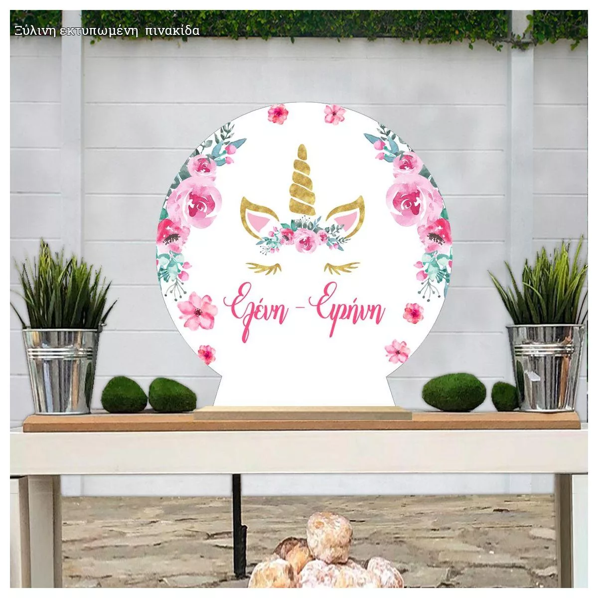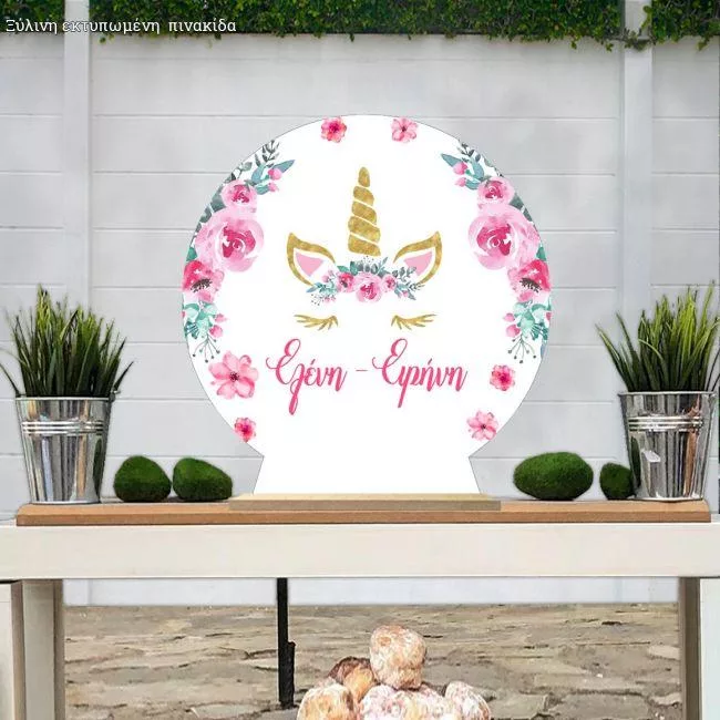 Ξύλινη πινακίδα, Μονόκερος με ζωγραφιστά λουλούδια