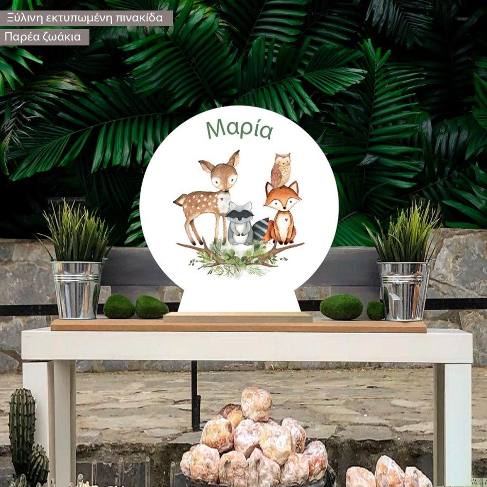 Ξύλινη πινακίδα, Παρέα Ζωάκια του δάσους, προσωποποιημένη