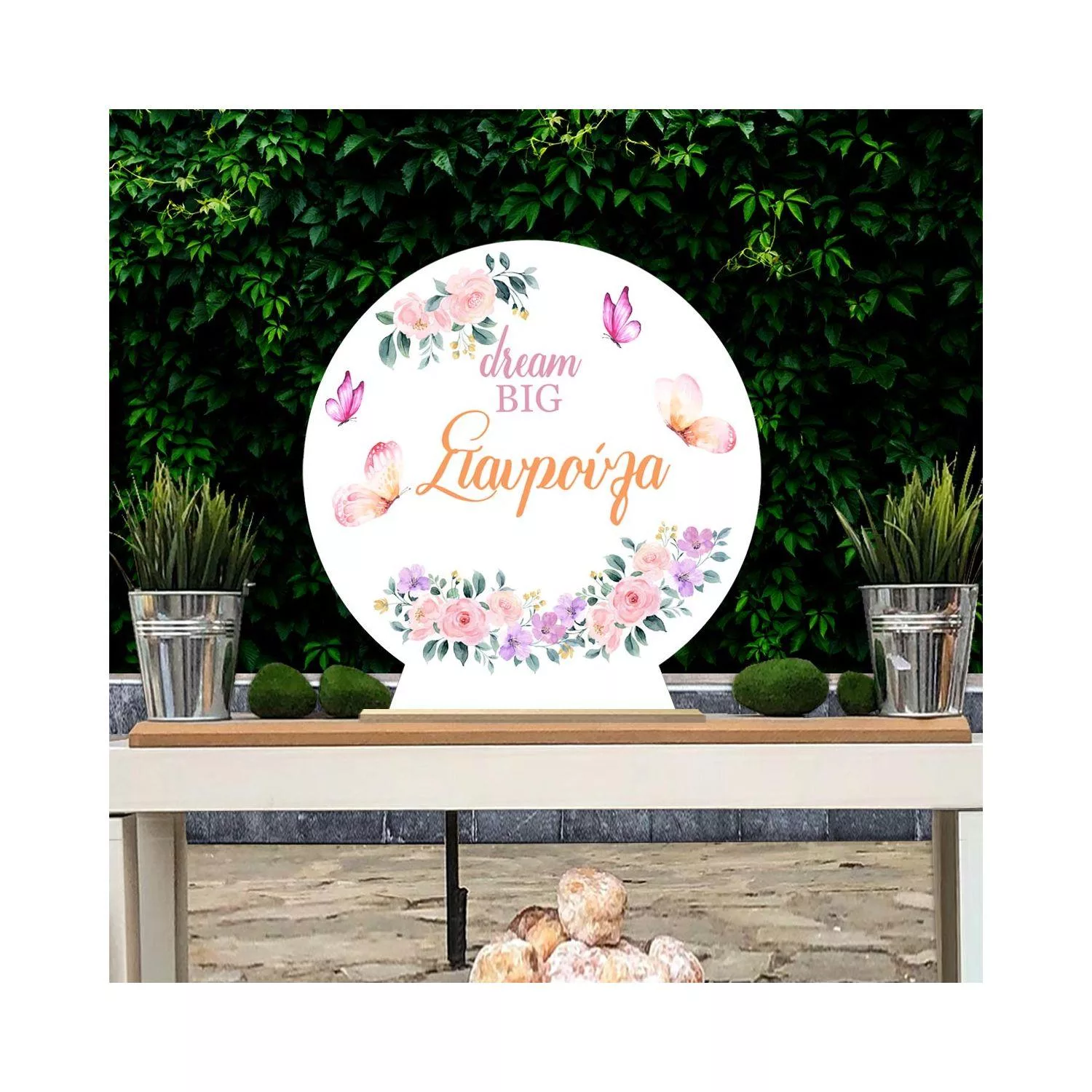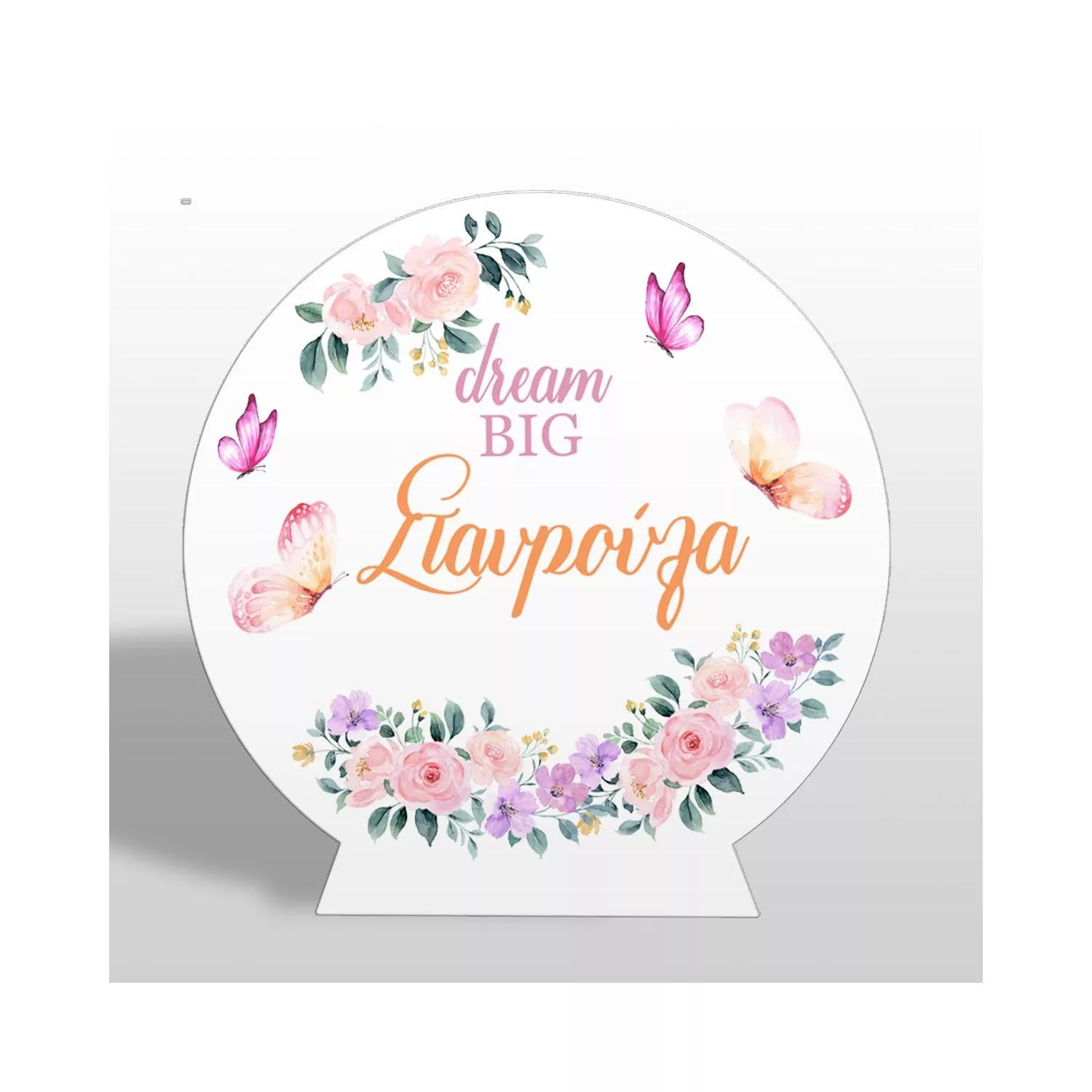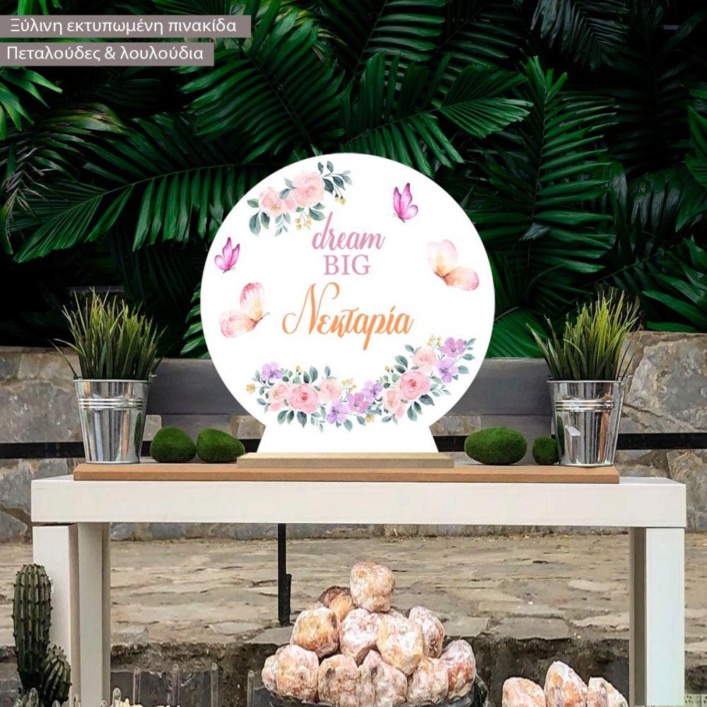 Ξύλινη πινακίδα, Πεταλούδες & λουλούδια, Dream Big προσωποποιημένη
