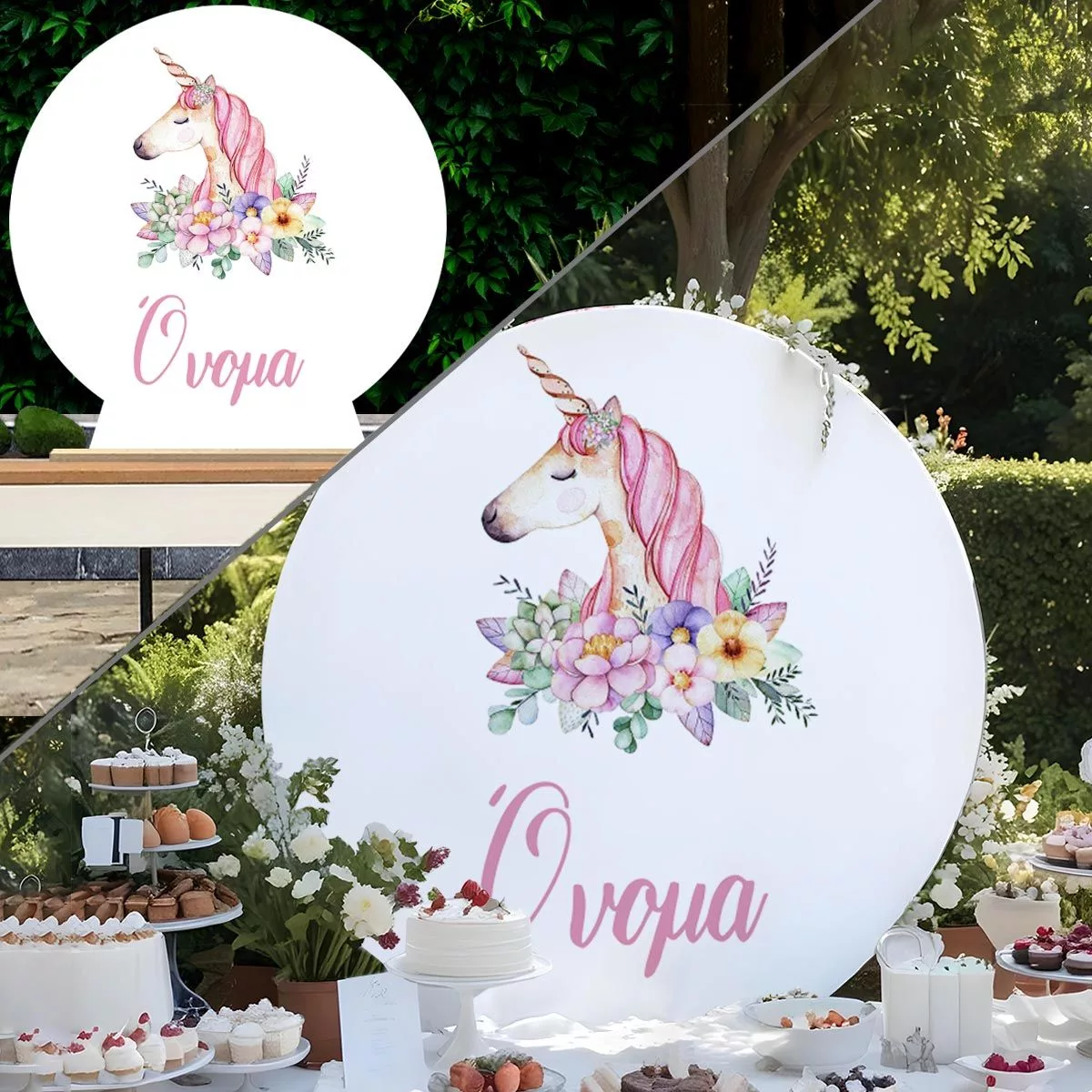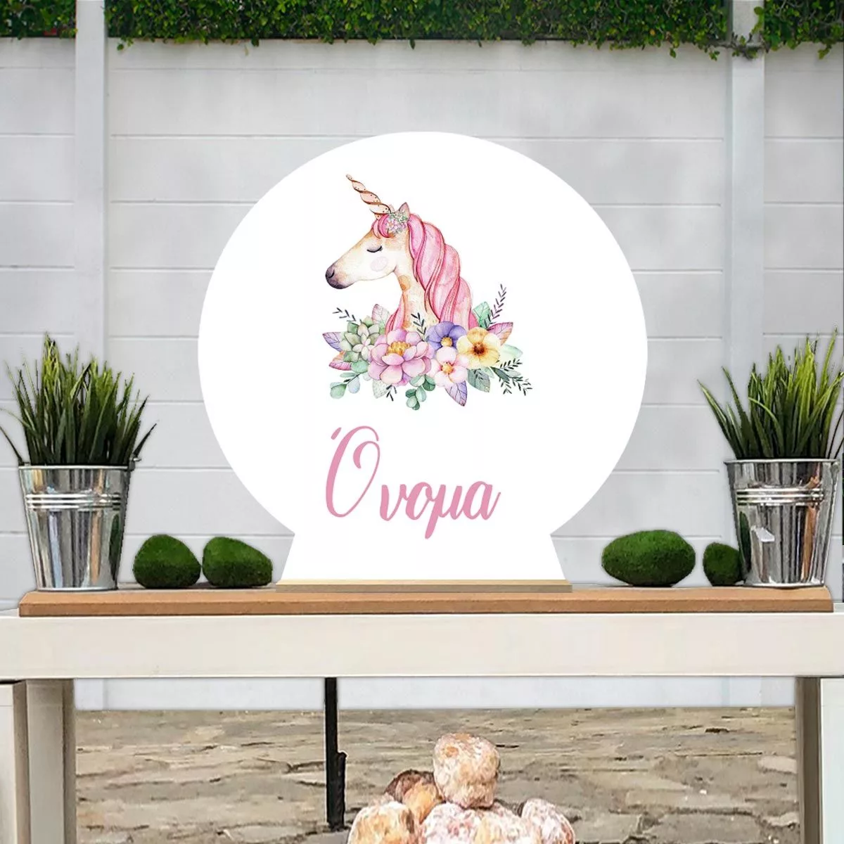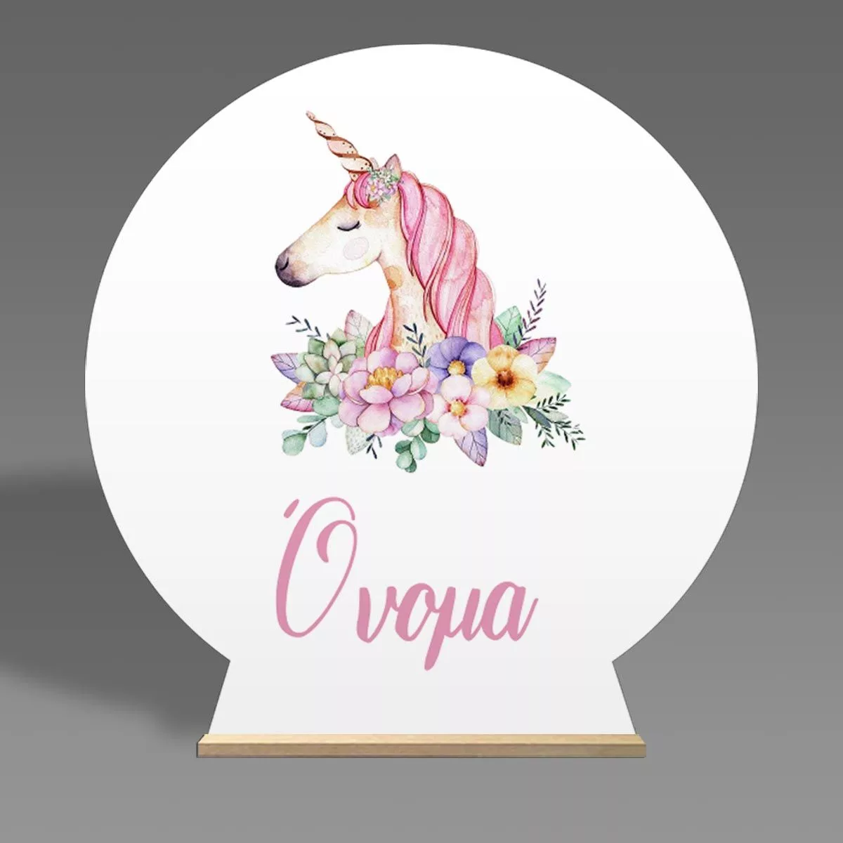 • Ξύλινη πινακίδα βάπτισης μονόκερος ακουαρέλα ζωγραφιστά λουλούδια.