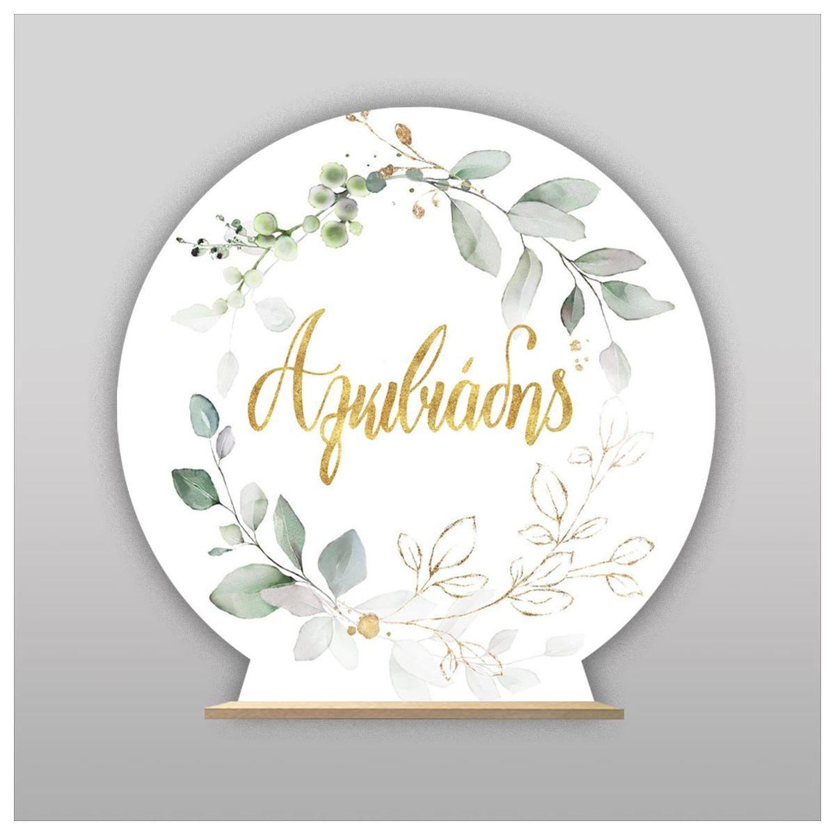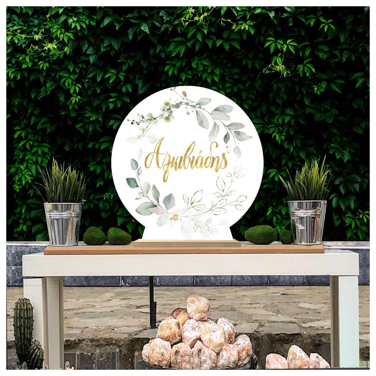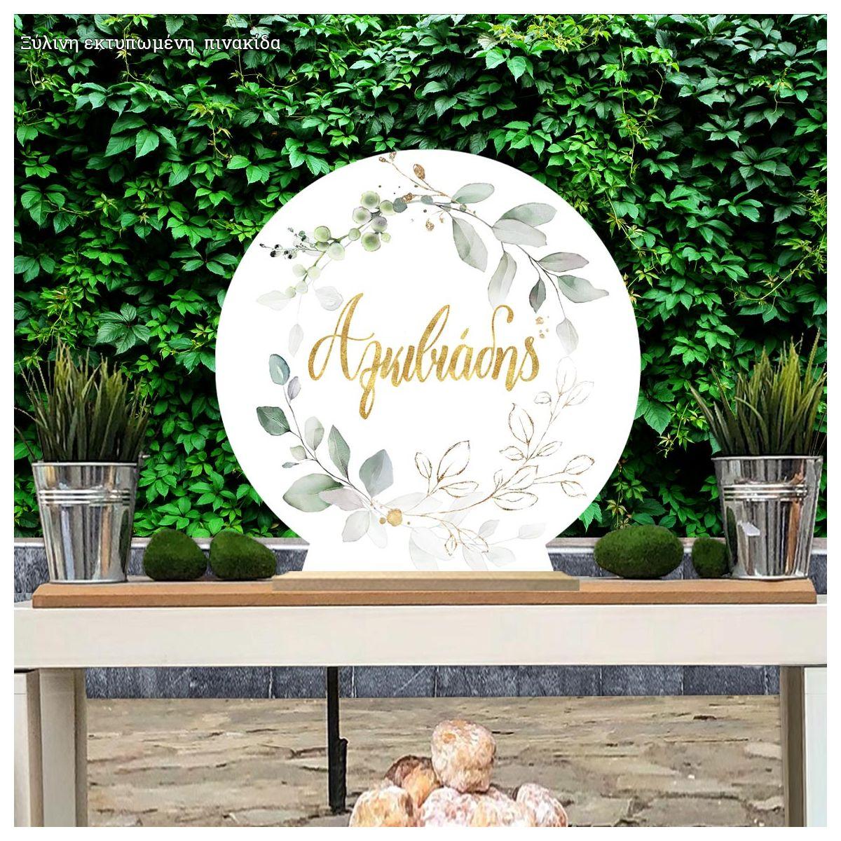 Ξύλινη πινακίδα, Vintage ζωγραφιστά φύλλα και λουλούδια, χρυσό όνομα