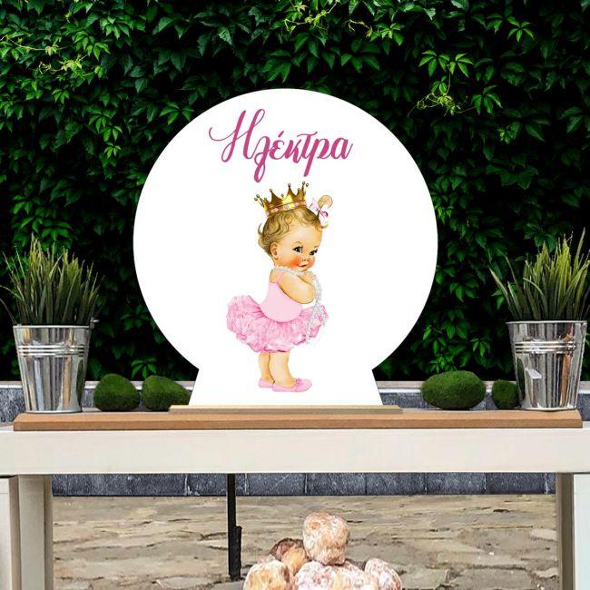 Εκτυπωμένη πινακίδα σε ξύλο, μπαλαρίνα ροζ φόρεμα με κορώνα