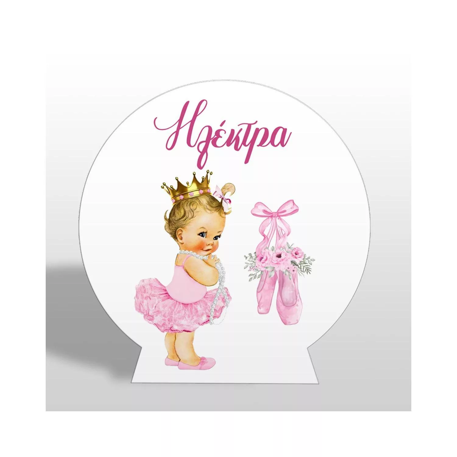 Εκτυπωμένη πινακίδα σε ξύλο, μπαλαρίνα ροζ φόρεμα με κορώνα και πουέντ