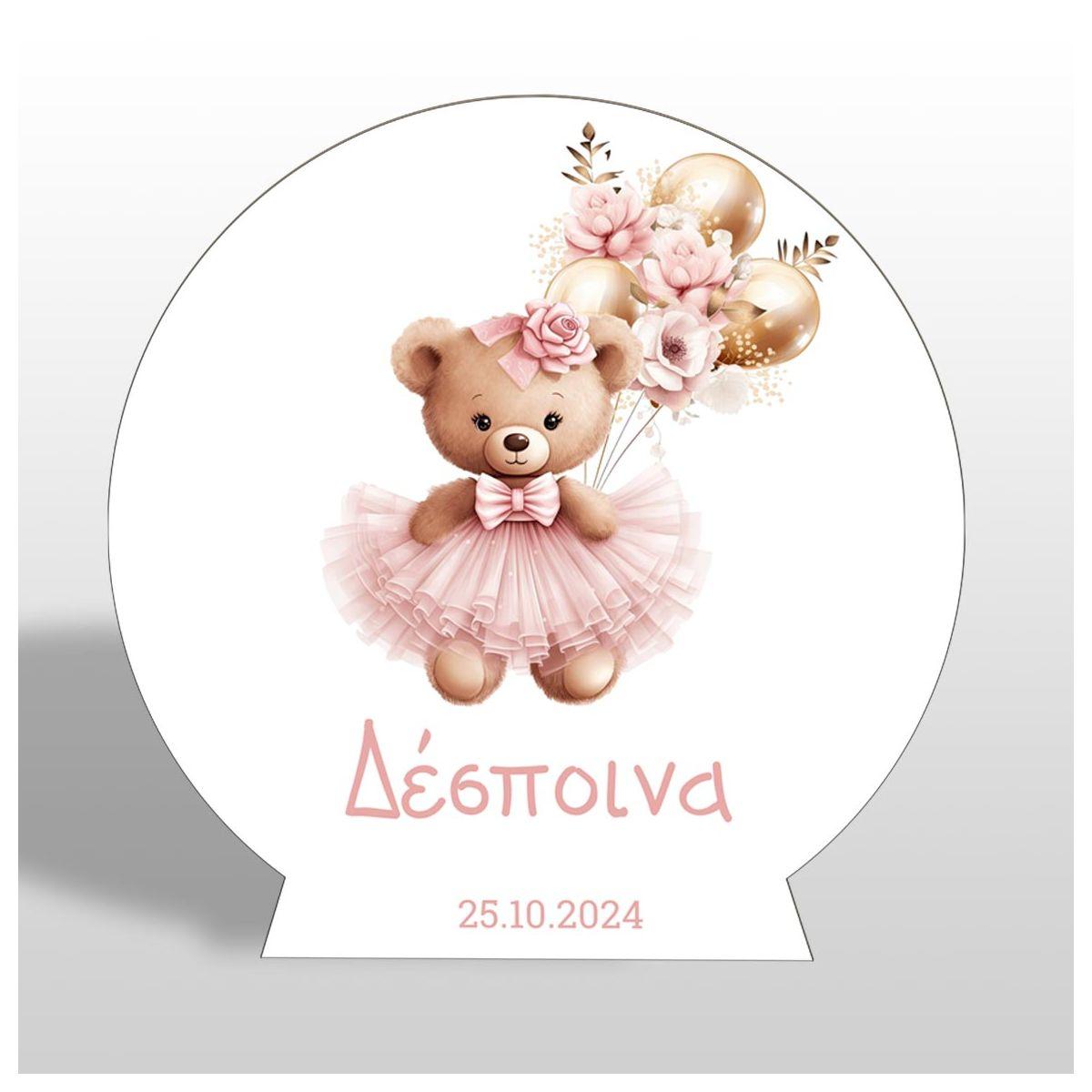 Ξύλινη πινακίδα, Χαριτωμένο αρκουδάκι χρυσαφιά μπαλόνια