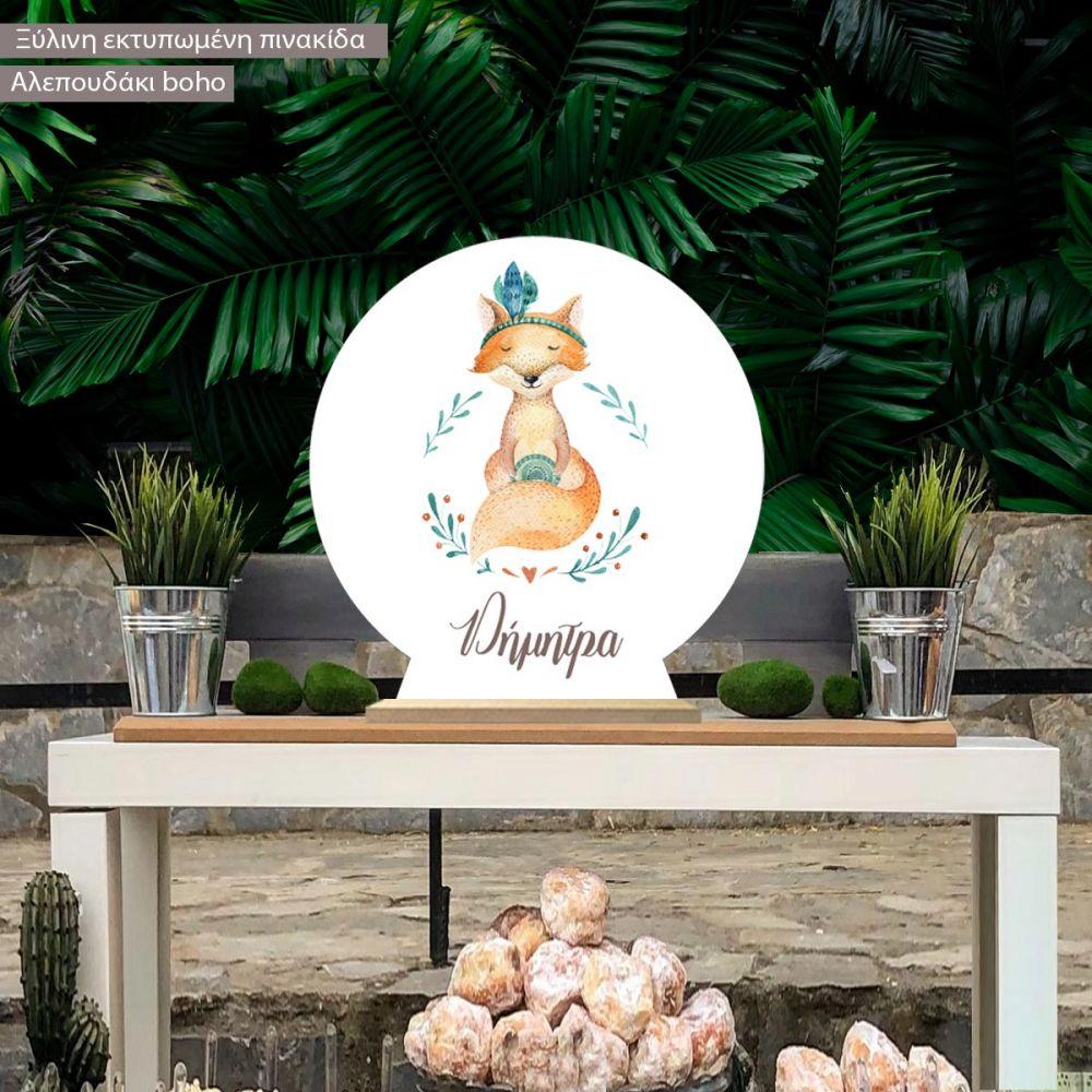 Ξύλινη πινακίδα, Χαριτωμένο ζωγραφιστό boho αλεπουδάκι, προσωποποιημένη