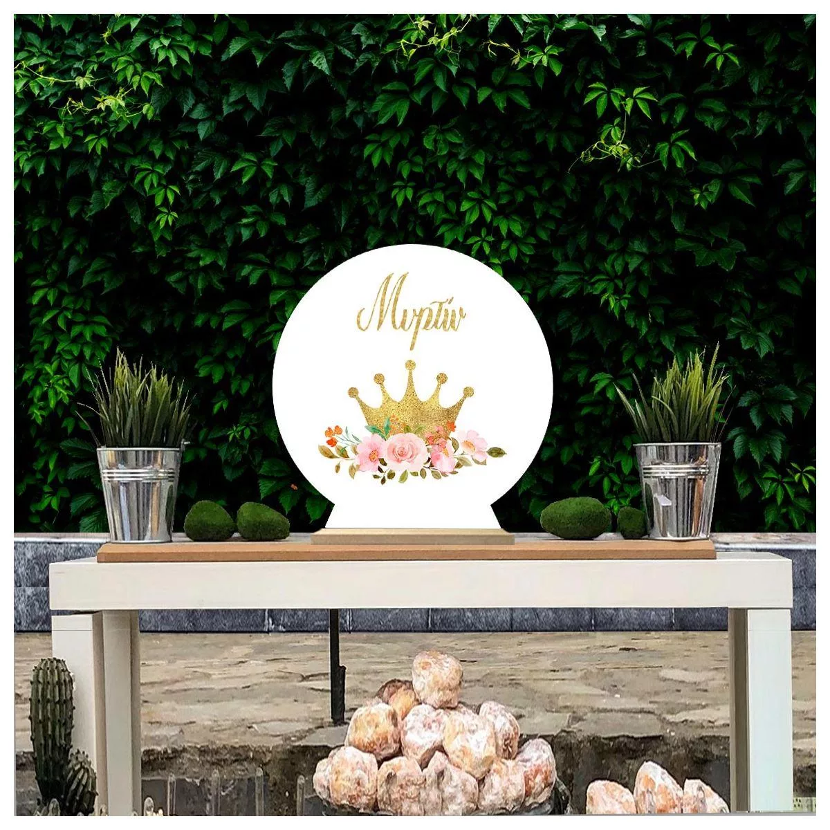 Ξύλινη πινακίδα, Χρυσή κορώνα με τριαντάφυλλα, προσωποποιημένη