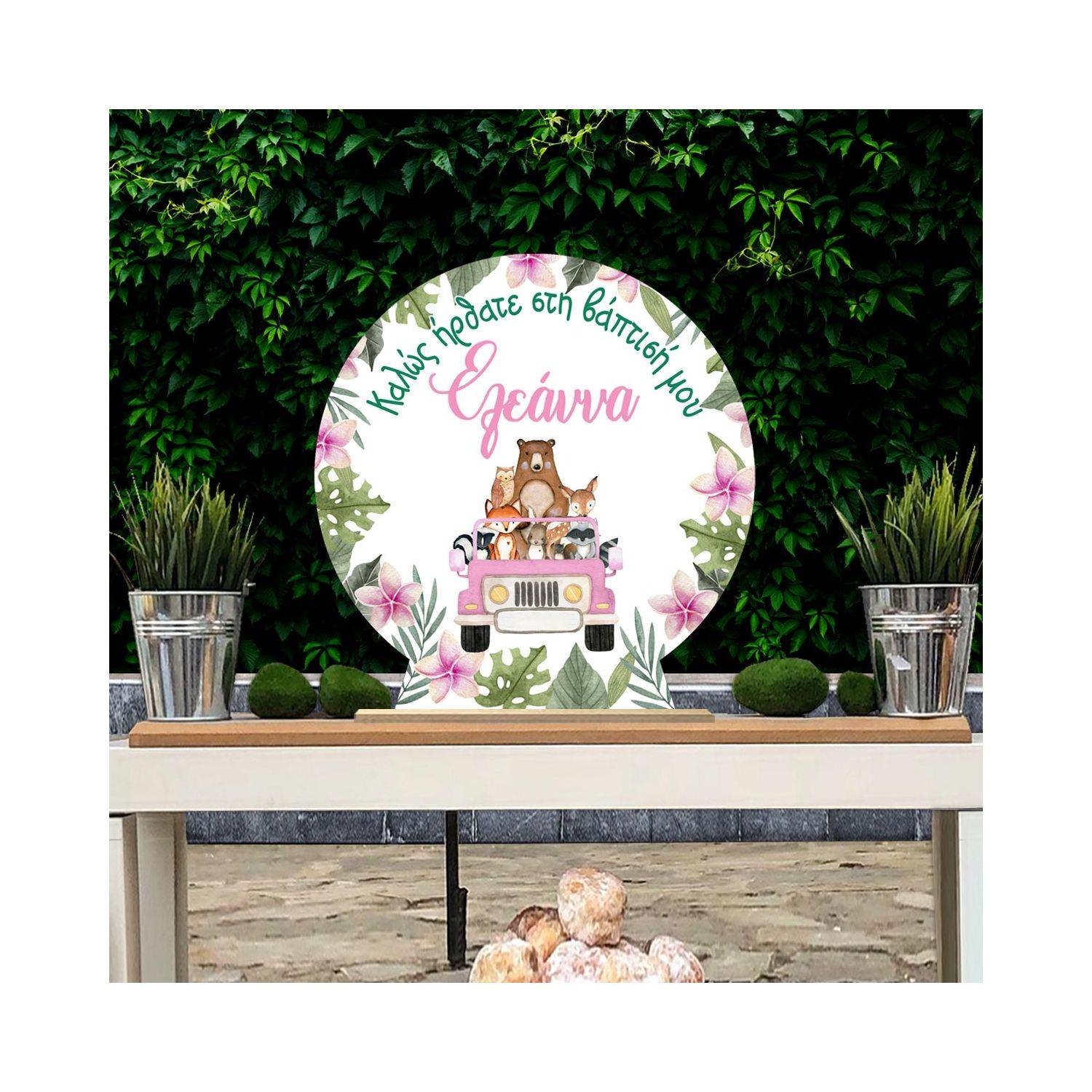 Ξύλινη πινακίδα, Ζωάκια του δάσους σε ροζ σε τζιπάκι
