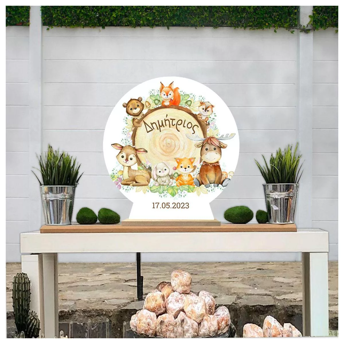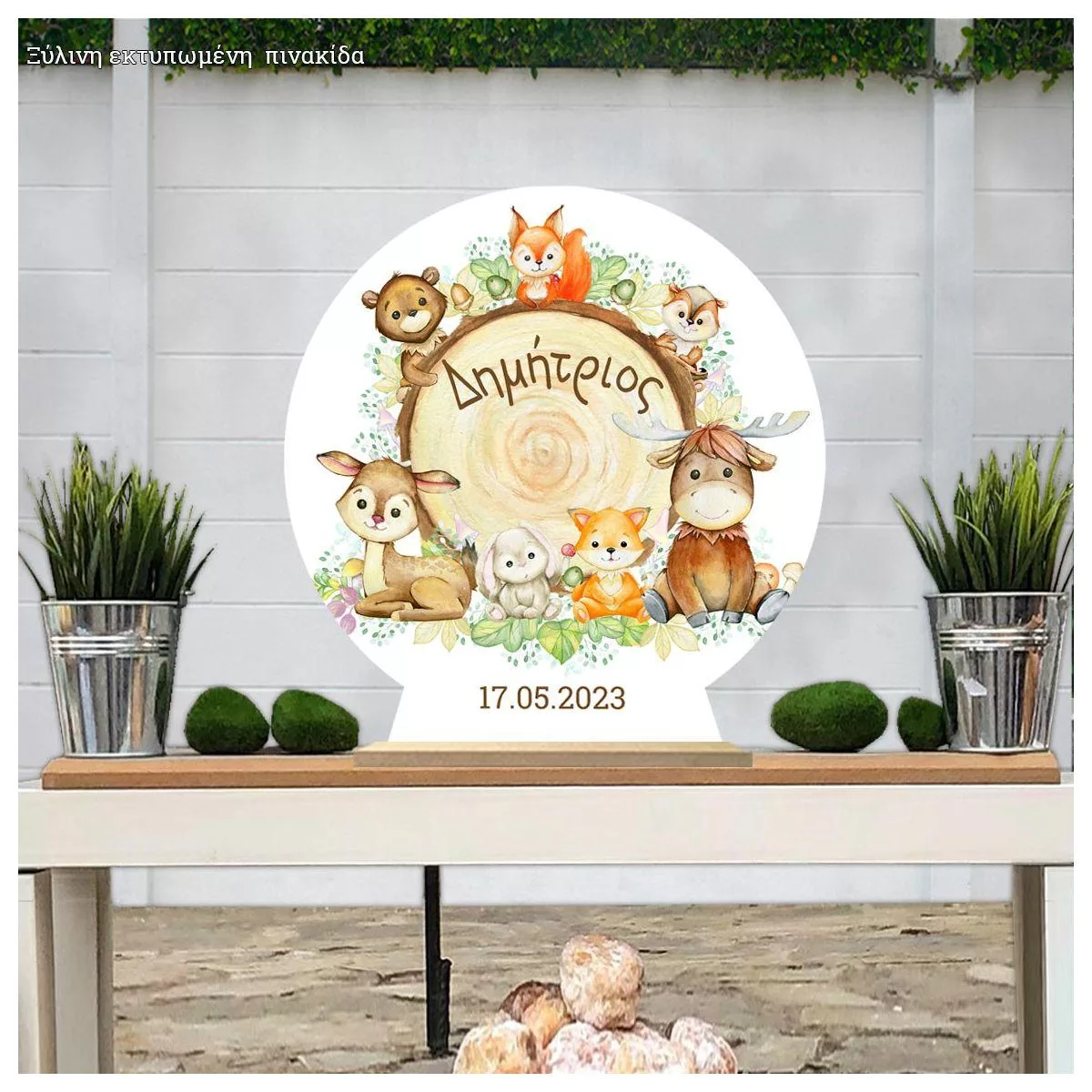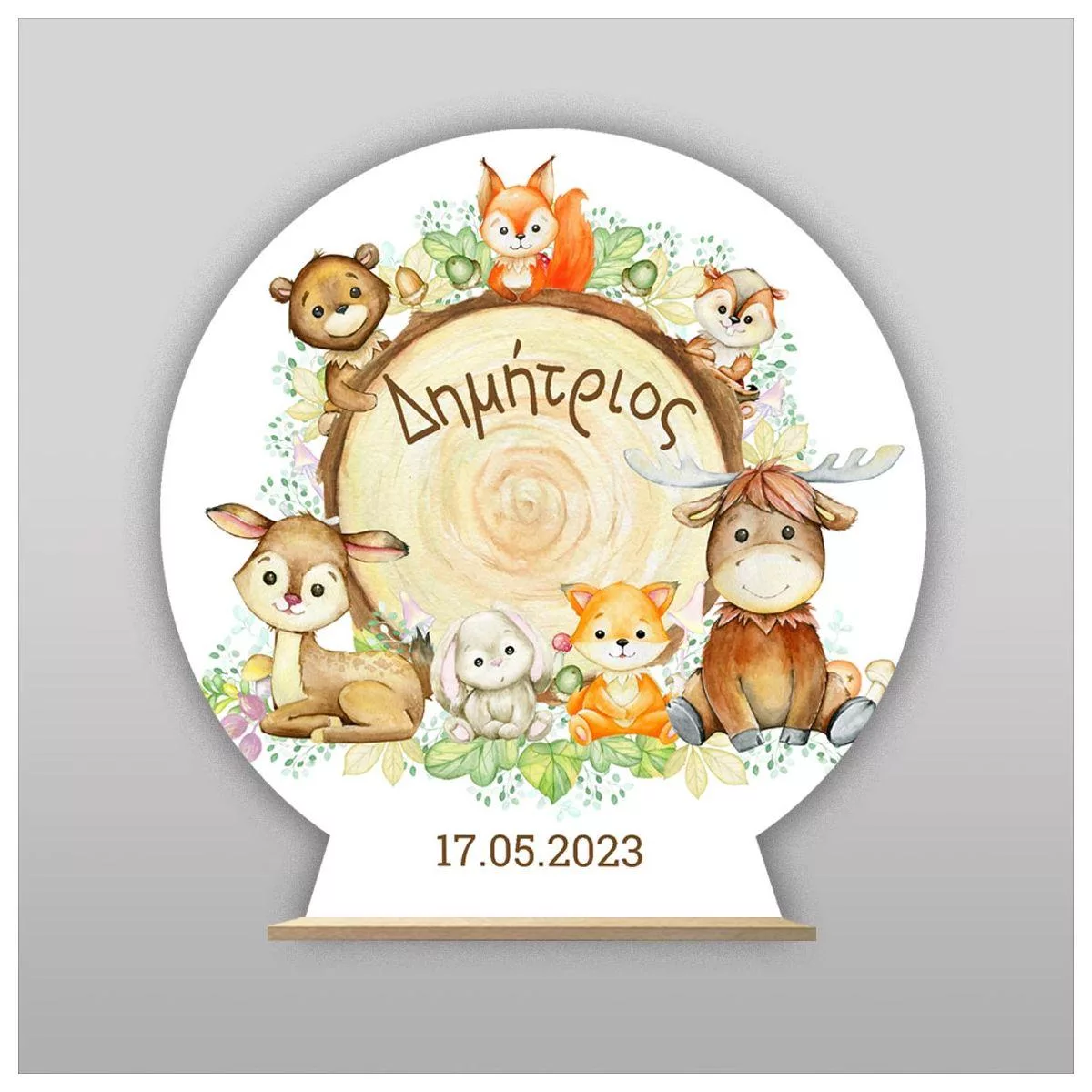 Ξύλινη πινακίδα, Ζωάκια του δάσους σε κορμό, ζωγραφιστά