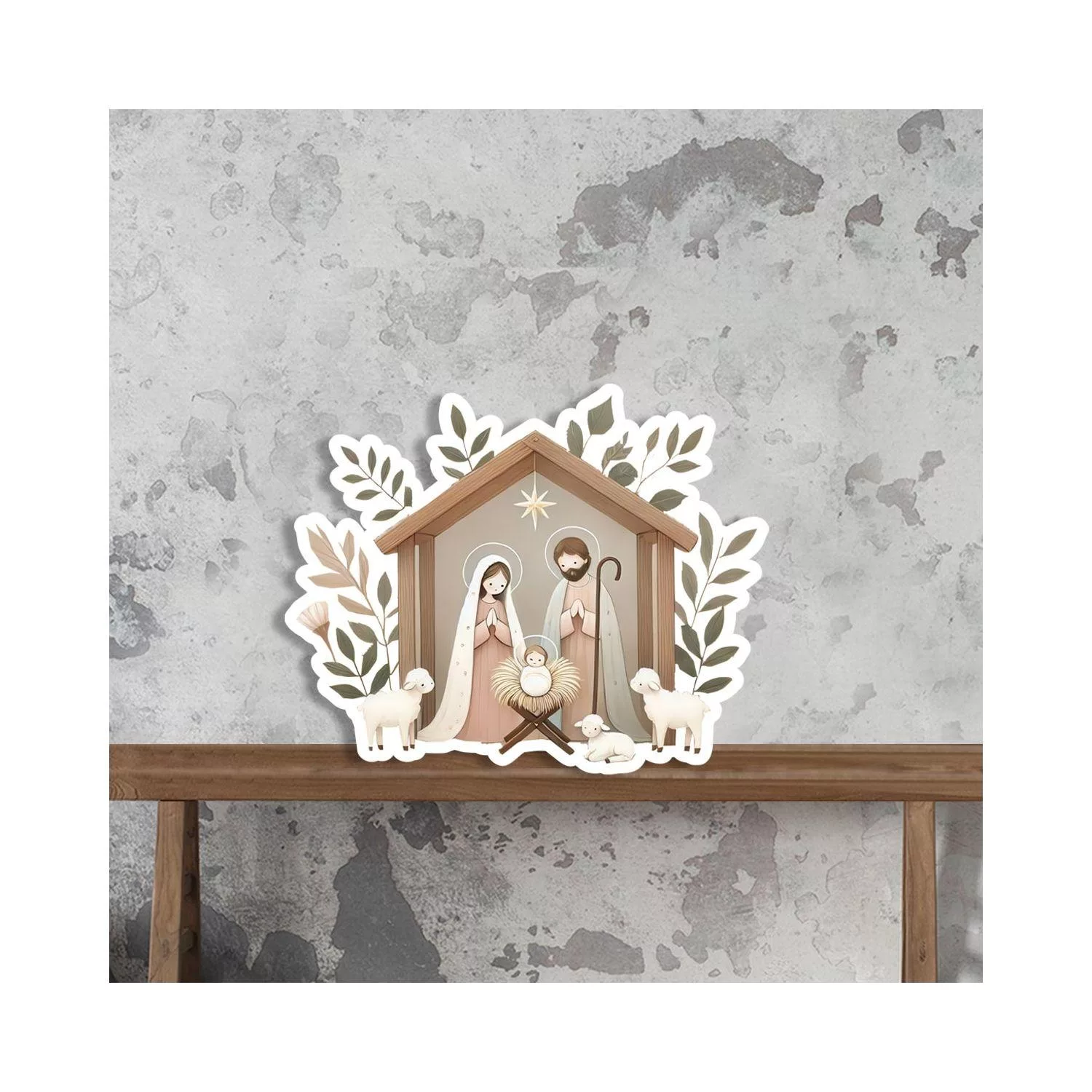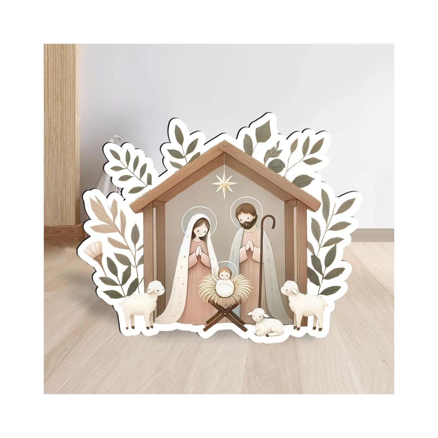 Φάτνη χαριτωμένη ξύλινη φιγούρα εκτυπωμένη.