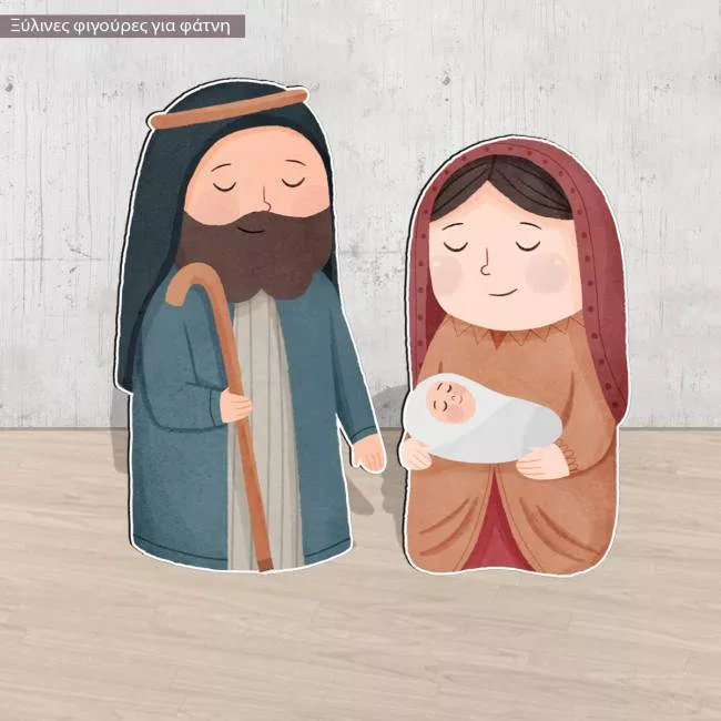 Η Παρθένος, Ιωσήφ και το Θείο βρέφος σκίτσα, ξύλινες φιγούρες εκτυπωμένες