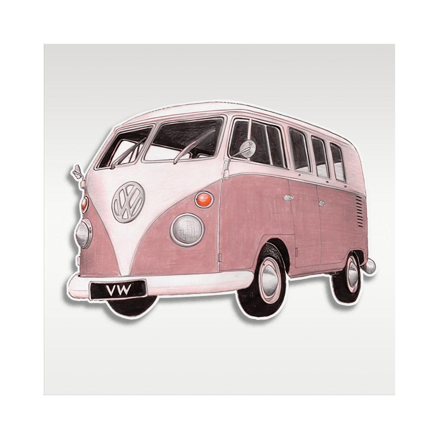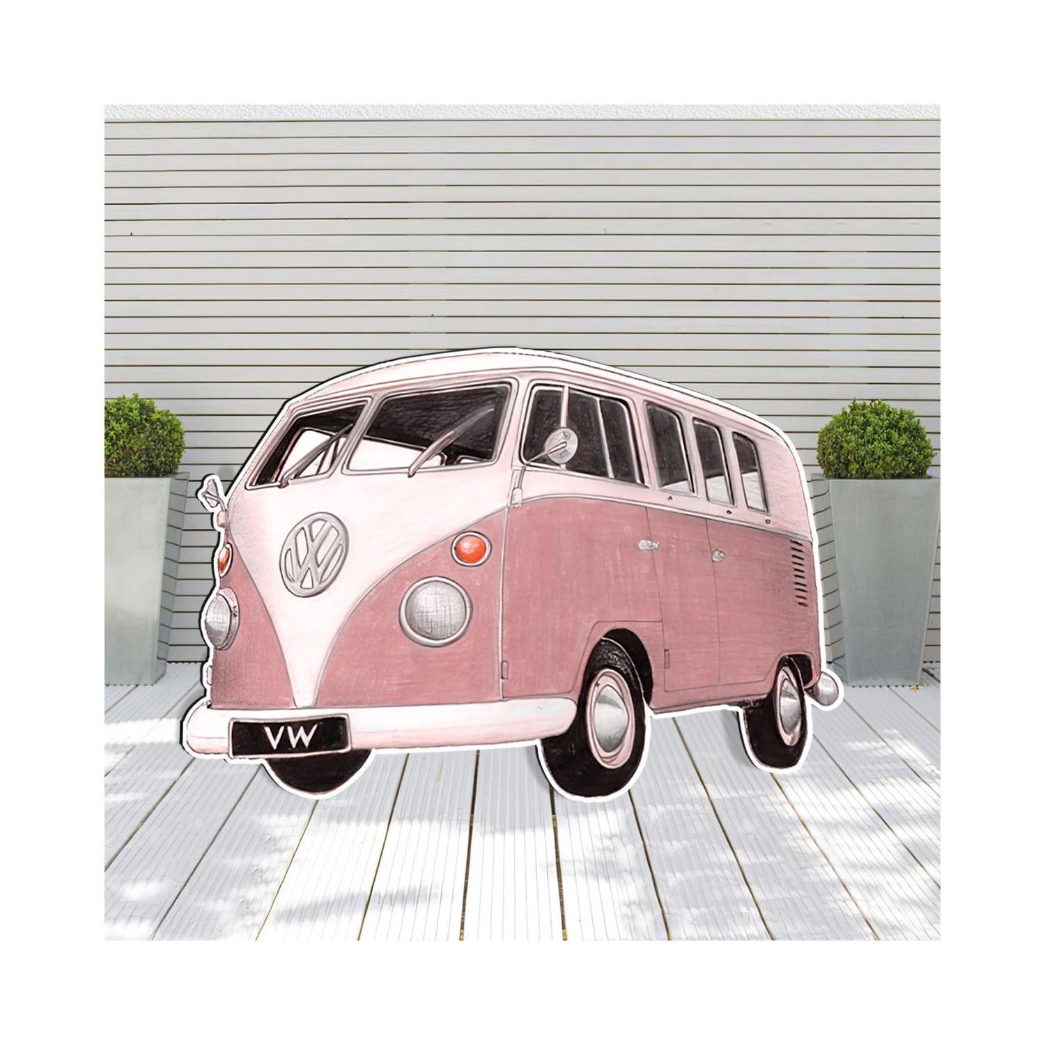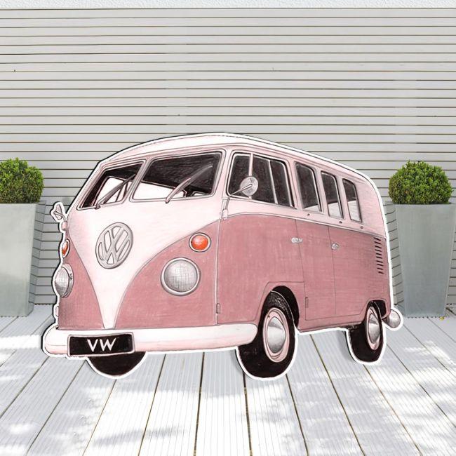 Ξύλινη φιγούρα στολισμού θεματικής βάπτισης, Βανακι Camper, ροζ