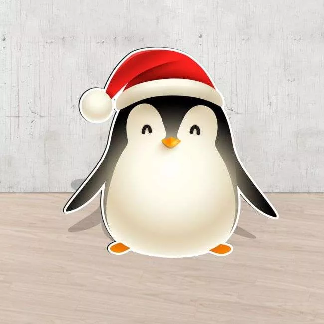 Ξύλινη φιγούρα εκτυπωμένη, πιγκουίνος με σκουφάκι