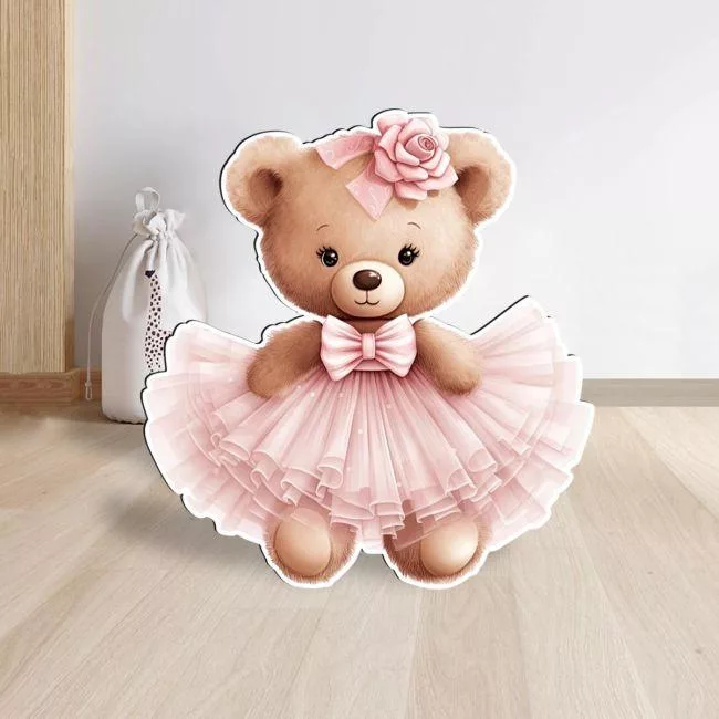 Ξύλινη φιγούρα στολισμού θεματικής βάπτισης, Χαριτωμένο αρκουδάκι μπαλαρίνα