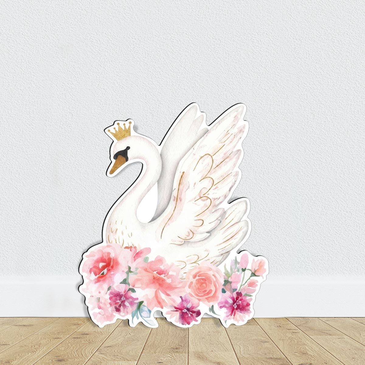 Κομψή ξύλινη φιγούρα κύκνου με χρυσό στέμμα και ρομαντικά ροζ λουλούδια. Ιδανική για βάπτιση ή παιδικό δωμάτιο.
