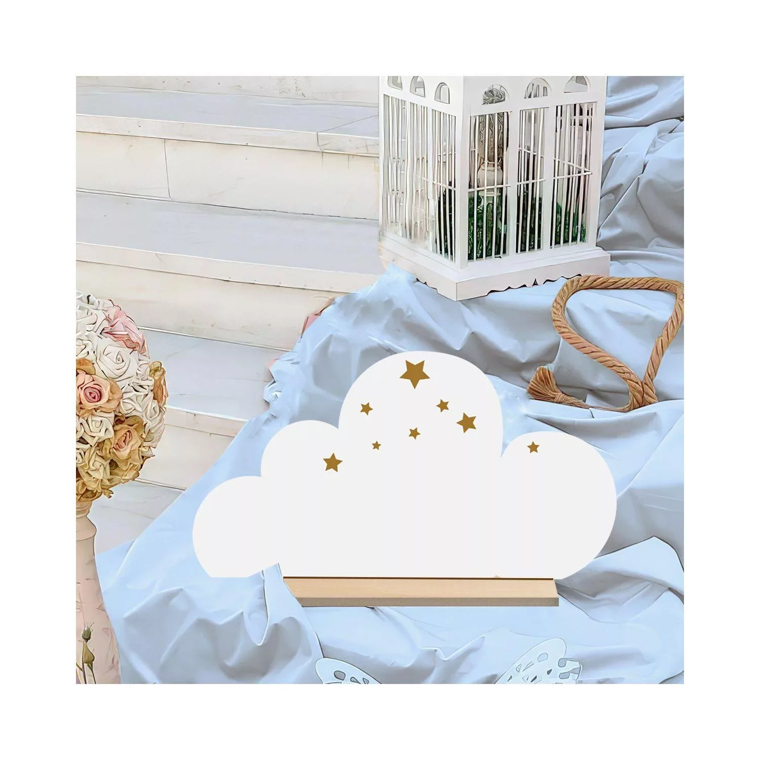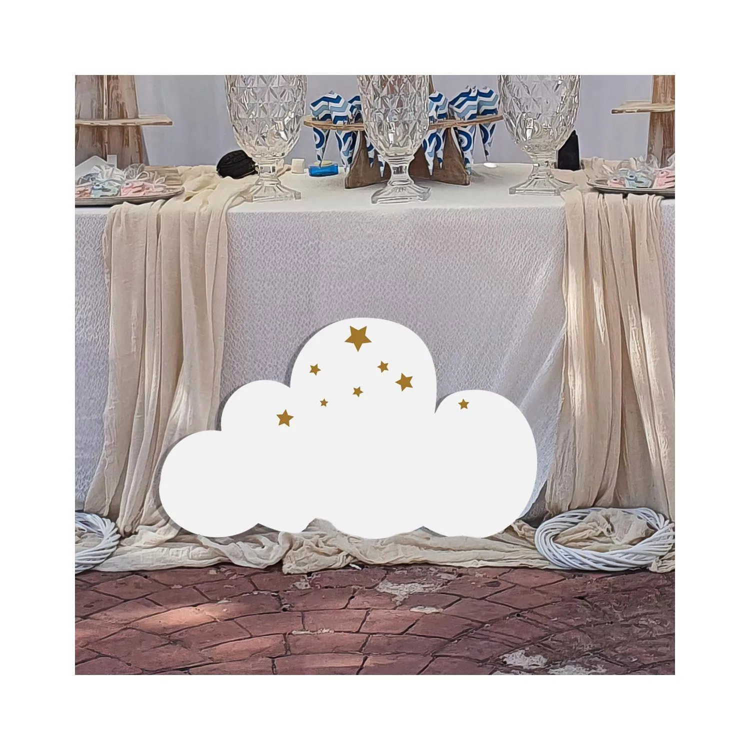 Ξύλινη φιγούρα για θεματική βάπτιση σύννεφο με χρυσά αστέρια