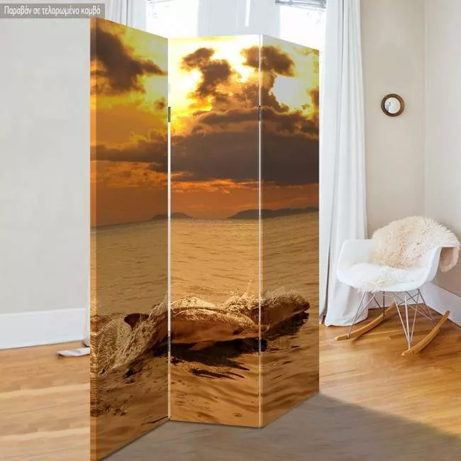 Παραβάν Δελφίνια στο ηλιοβασίλεμα