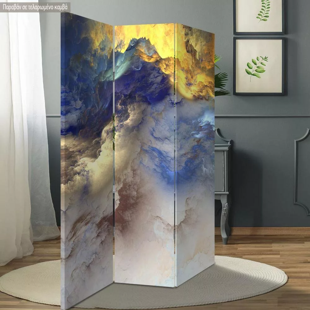 Ο καμβάς εφαρμόζεται με συνδετήρες σε συμπαγές ξύλο. Το βάρος είναι ~ 4 κιλά το κάθε φύλλο~ 12 κιλά το 3φυλλο.