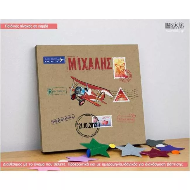 Πίνακας παιδικός σε καμβά Αεροπλάνο διπλάνο travel, με όνομα