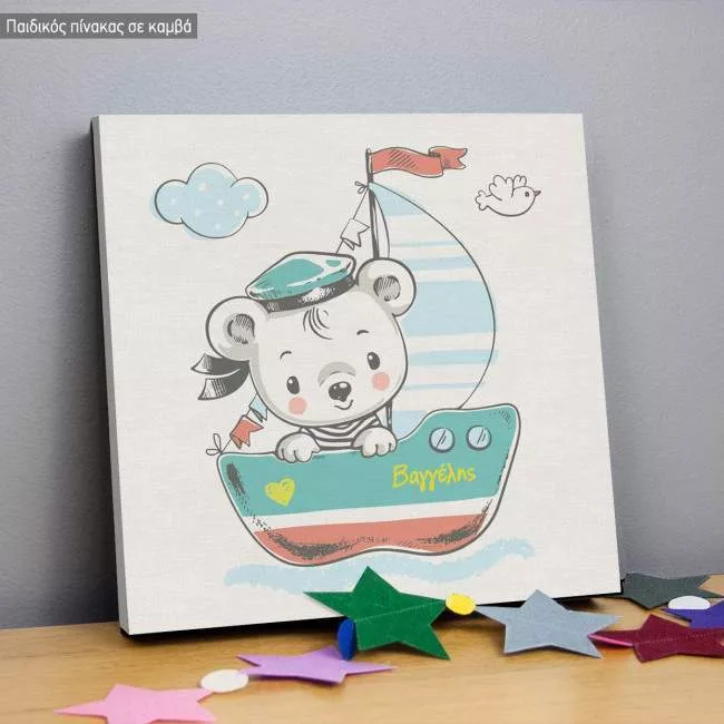 Πίνακας παιδικός σε καμβά Αρκουδάκι καπετάνιος, με όνομα