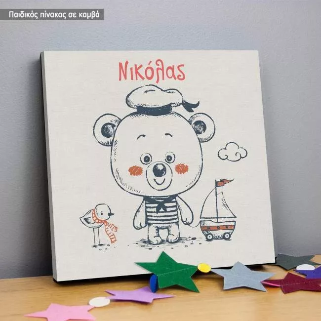 Πίνακας παιδικός σε καμβά Αρκουδάκι ναυτικός